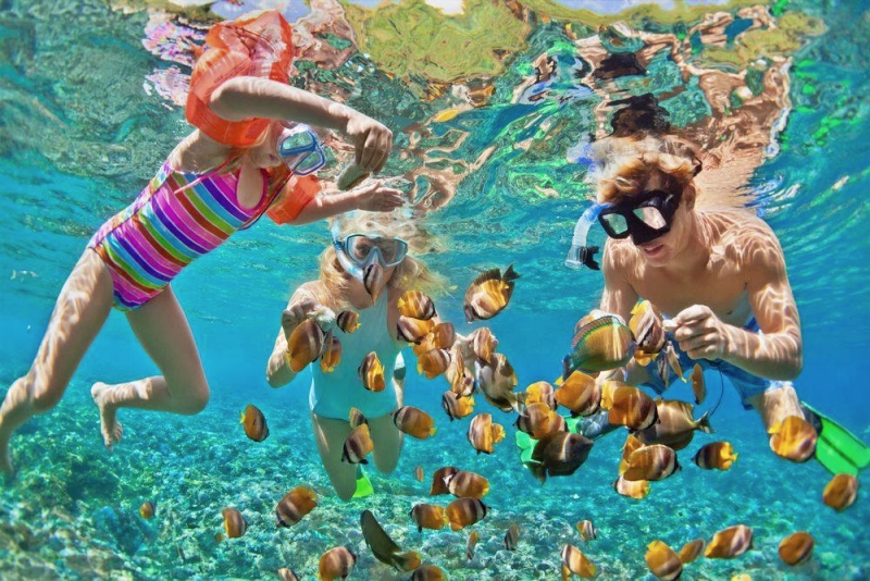 Around the reef, you will see more soft coral and sergeant major fish in schools swarming around. The water is warmer in the very shallow sandy areas and you can enjoy a long time exploring the third reef in the world.