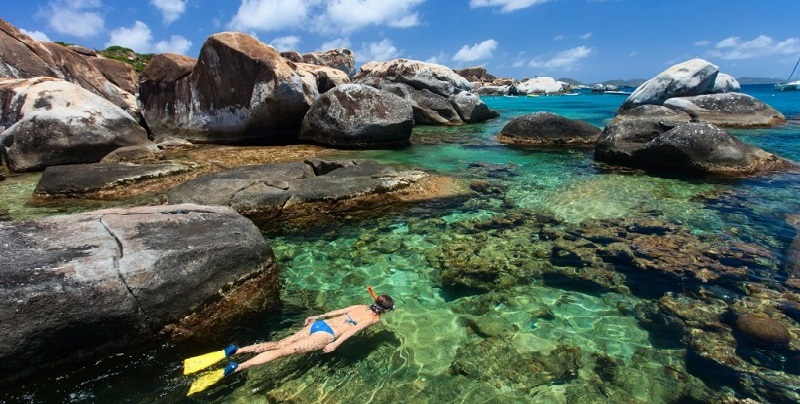 The Baths is one of the most popular tourist destinations in the British Virgin Islands. Snorkelers can explore the underwater caves and swim through the crystal-clear waters for an unforgettable experience.