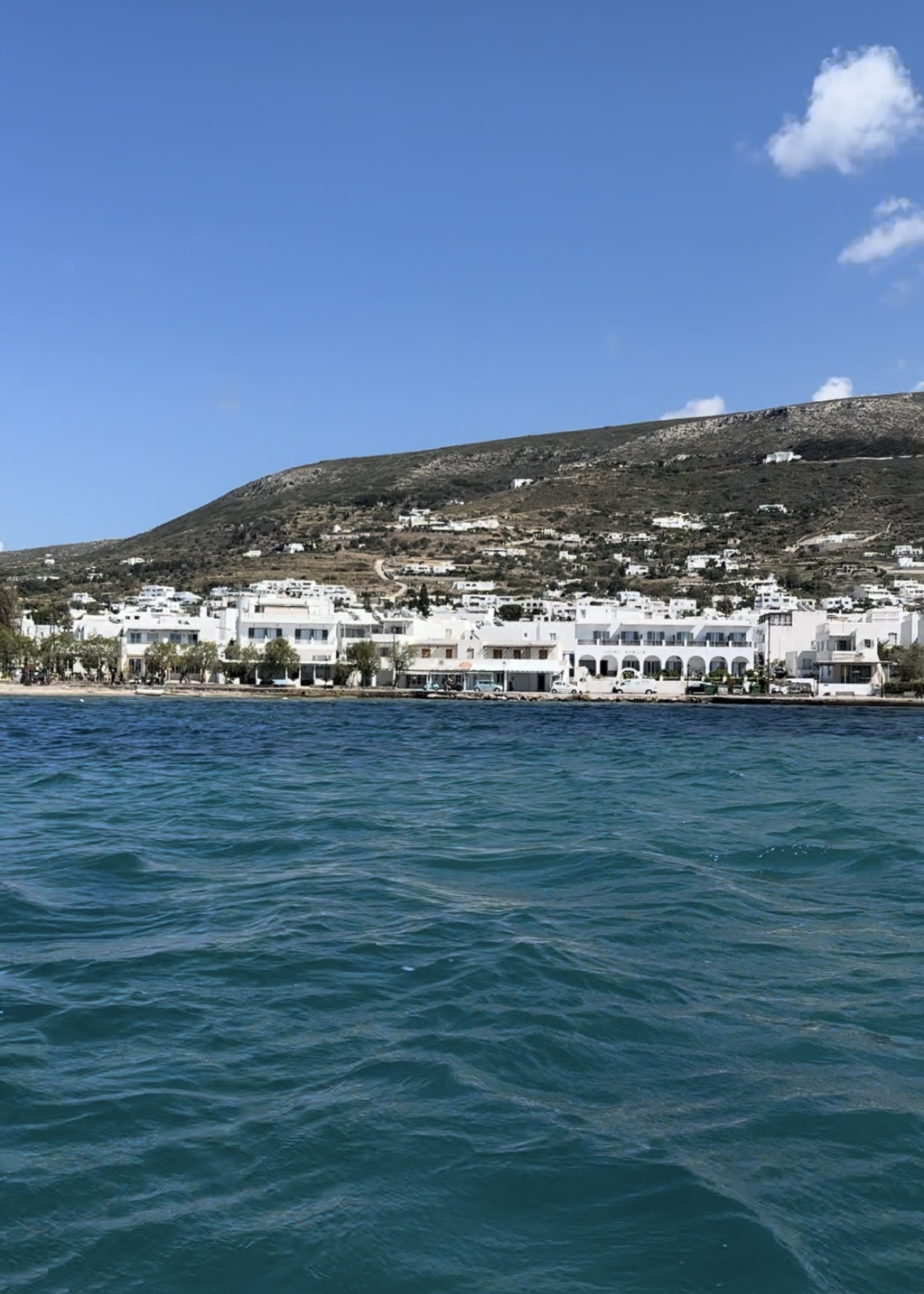 We boarded the yacht in Alimos Marina in Athens. My husband, Stuart, went and provisioned for us while I was finishing up with the yacht show. We left the marina and headed towards Kythnos which is 45 Nautical Miles away and took around 6 hours. On route we anchored in the bay below the Temple of Poseidon in the Cape of Sounion. Unfortunately we did not have time to hike up to the temple but seeing it from the water was incredible. The temple dedicated to the God of the Sea was built around 440 BC. After some lunch we lifted the anchor and headed to Double Bay at Kythnos. This bay was so beautiful. We went to restaurant Kolona for dinner where the staff were super friendly. We witnessed an amazing sunset while eating fresh squid with a glass of Greek white wine. Delicious!Â