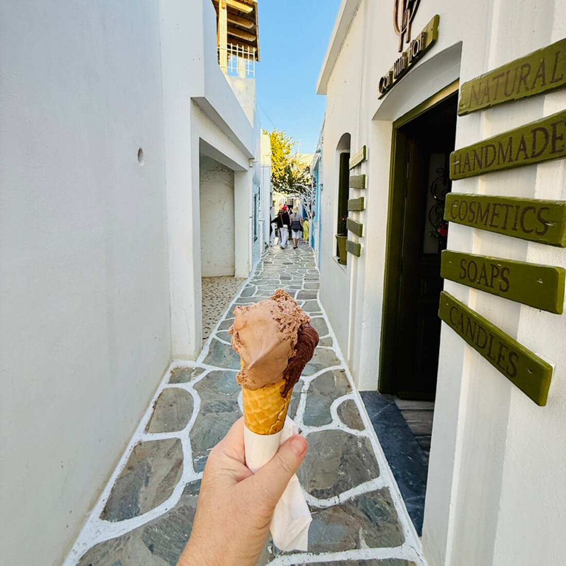 Breakfast was served on board before a sail to Kythnos. We enjoyed a Beach BBQ, a trip to a natural hot springs, and amazing water sports before arriving at Kolona around 4:30 PM. A trip up to Chora had us shopping and eating ice cream. In the evening, we enjoyed dinner on board, followed by some yacht hop parties, capturing the lively spirit of the Cyclades