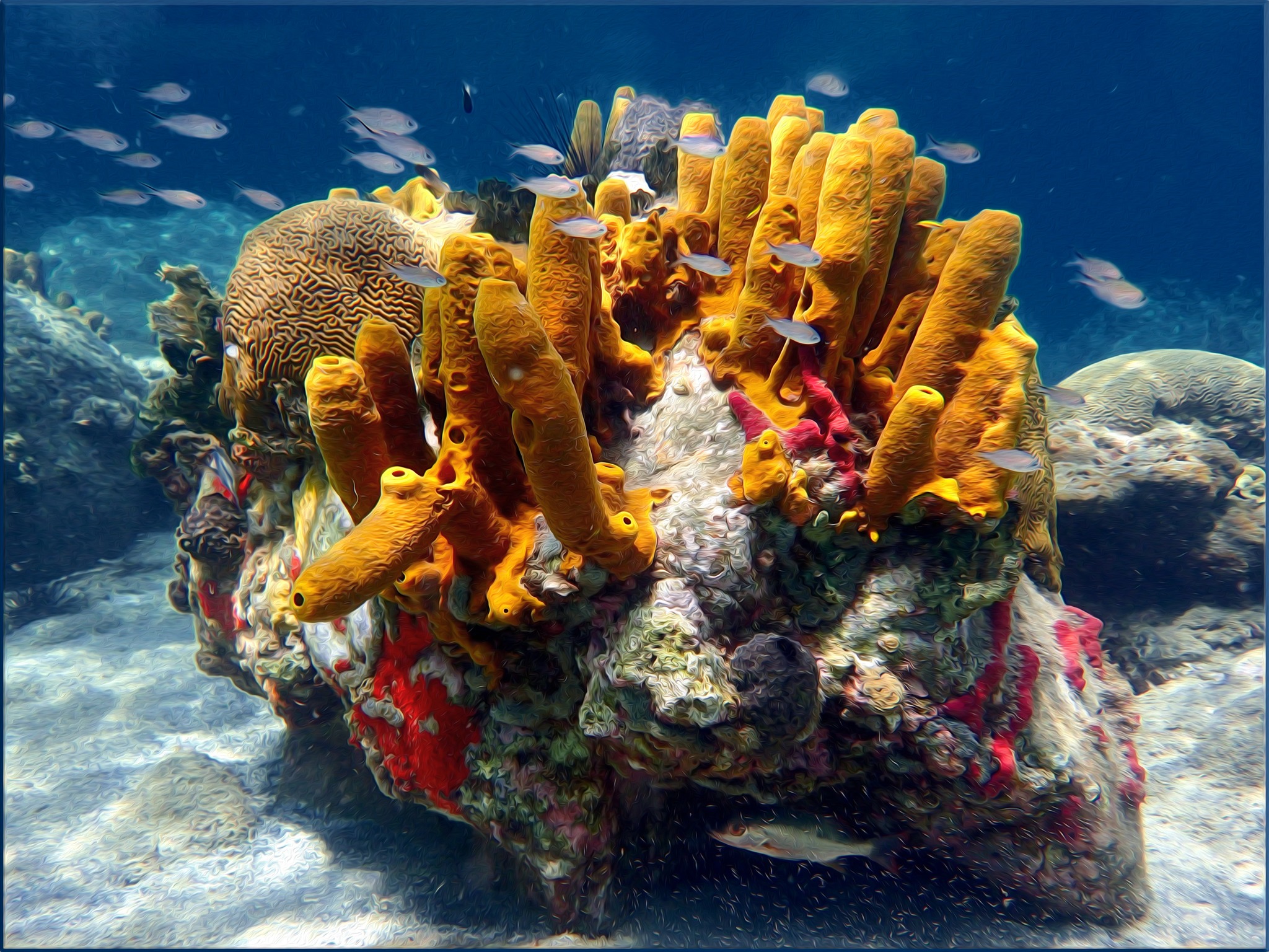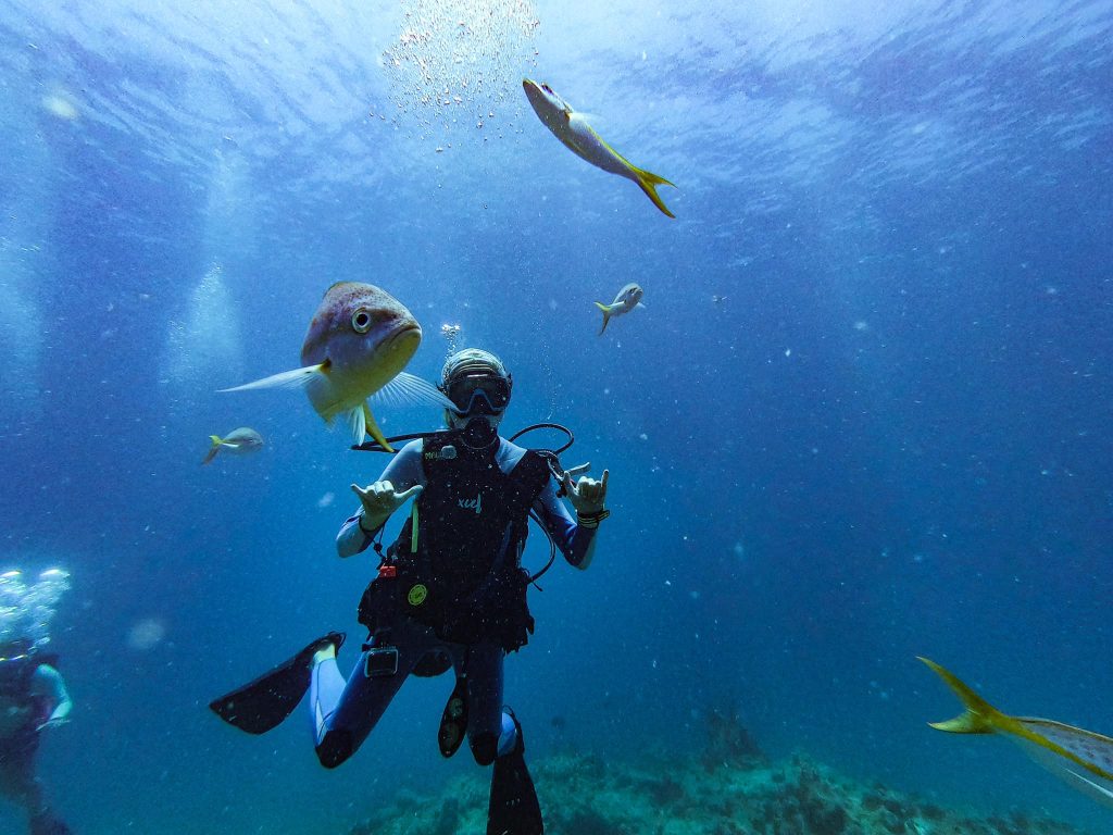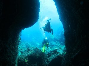 Canyons, ledges, walls, and overhangs make the dive much more exciting. Look up under the overhangs. If you bring a dive light you will see the incredible boom of cup corals and brightly hued sponges that weave a colorful underwater tapestry. Don’t forget your underwater camera!