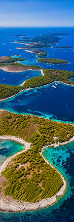 The Exumas are a string of 365 unspoiled islands and cays Southeast of Nassau, referred to as the “Out Islands” and stretch over a 120-mile-long archipelago. Remote locations with miles and miles of pristine white sandy beaches make the Exumas a true paradise. Explore sand bars, crystal clear waters, vibrant underwater life, nature trails, grottos and even swimming pigs! If getting away from it all is what you desire, then a crewed yacht charter in the Exumas is the perfect vacation for you. The best time to charter is between November and August. The weather in the winter months is a little cooler with temperatures ranging from 70-75F. Summer is warmer with averages of 80-85F.