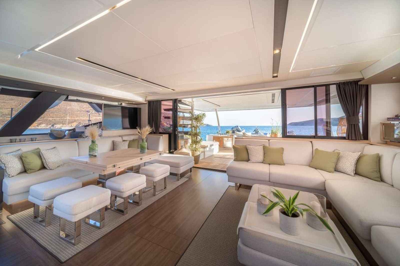 AETHER is pure luxury in a catamaran her expansive flybridge with an authentic ocean terrace and a forward cockpit with a jacuzzi; are just some of her hallmark features. Experience the exhilaration of sailing or simply relaxing on the decadent lounges or sunbathing beds. Her stunning interior is boldly modern and incredibly spacious to deliver the ultimate in comfort and luxury.