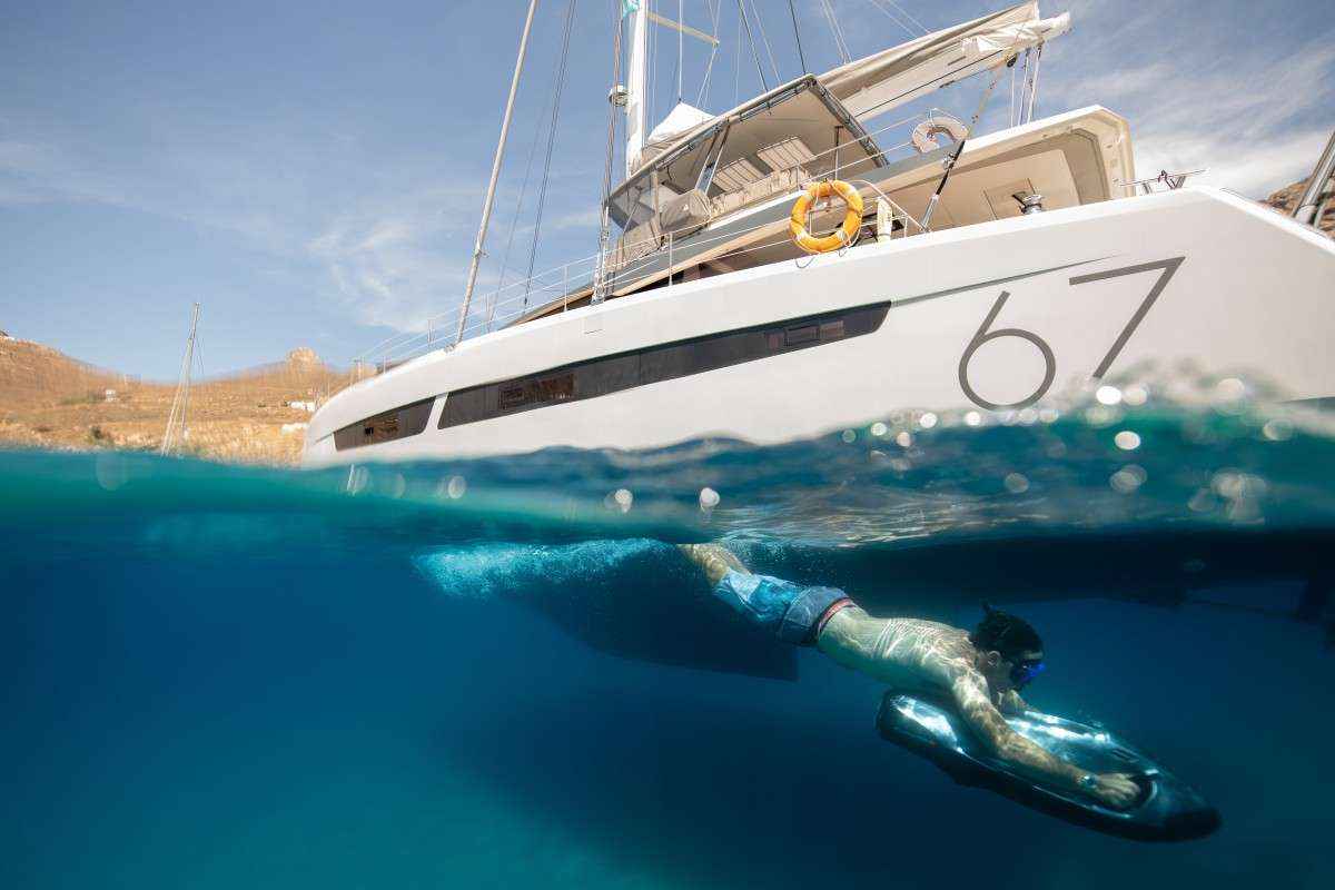 AETHER is a Fountaine-Pajot 67 sailing catamaran offering crewed yacht charters in the Greek Isles.