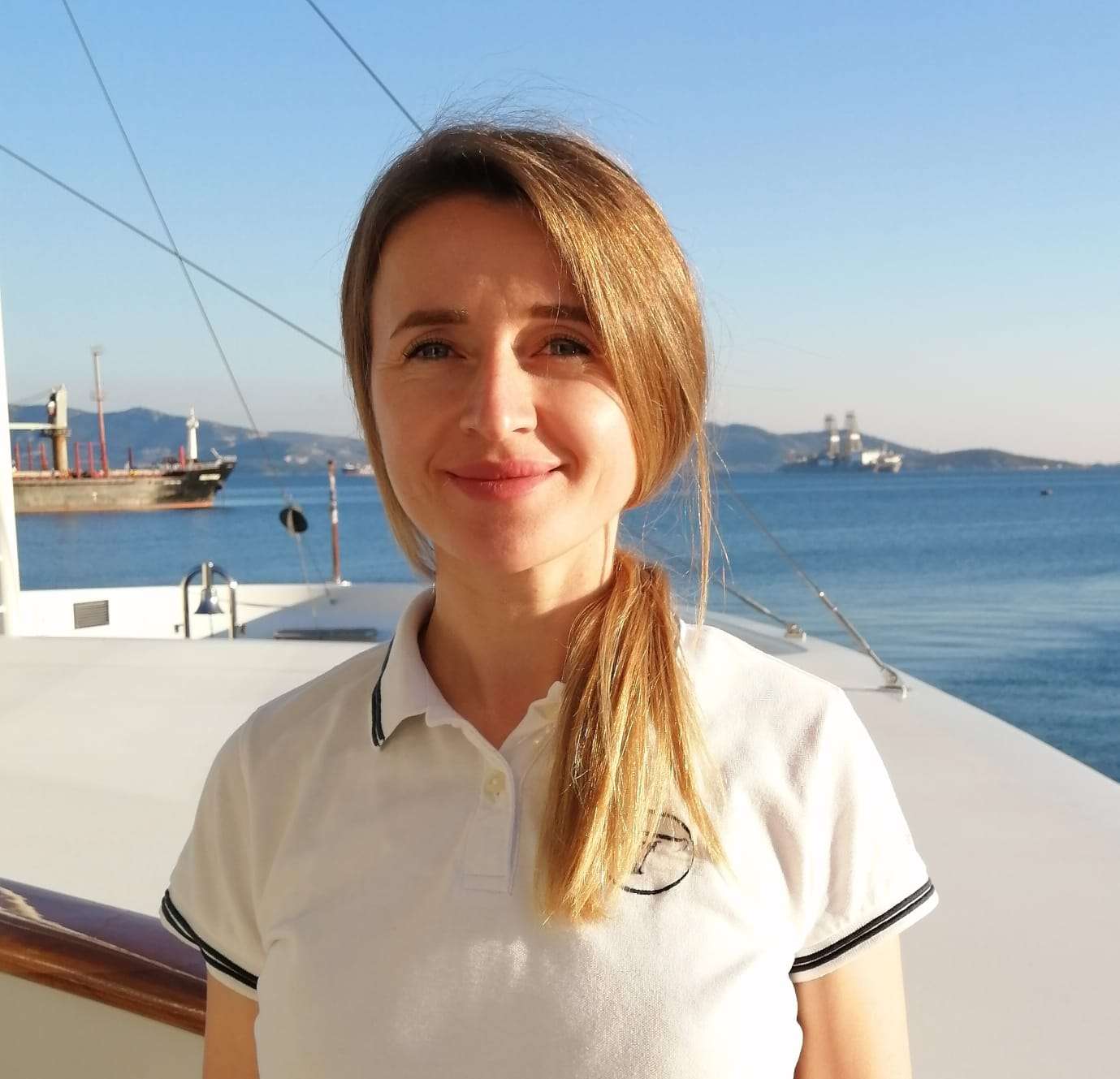 Maryna Letinska, the chief Stewardess onboard Aloia 80, was born in 1989. Maryna completed her Master of Restaurant Service at the Maritime College and has acquired several skills, including table setting decoration, housekeeping, flower arrangement, basic cocktail making, flexibility/adaptability, and provisioning.