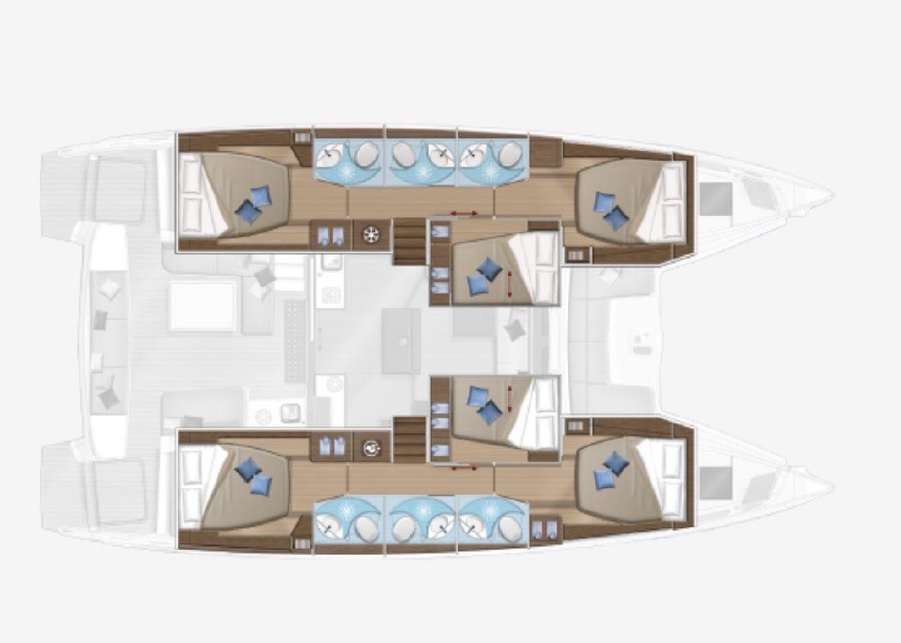 ANDARE AVANTI is a Lagoon 50 catamaran, built in 2020 with high standards. The refit has been completed in 2023. She can comfortably accommodate up to 10 guests in a configuration of 4 queen cabins and 2 full cabins which are suitable for either one adult or 2 children. Her raised lounge of the salon provides the best 360° panoramic views of the water. She features a balanced offering of well-considered living areas, comfort, performance, and ease of handling, making her an ideal choice for a variety of marine activities, while her professional crew of 2 will cater to all your needs.