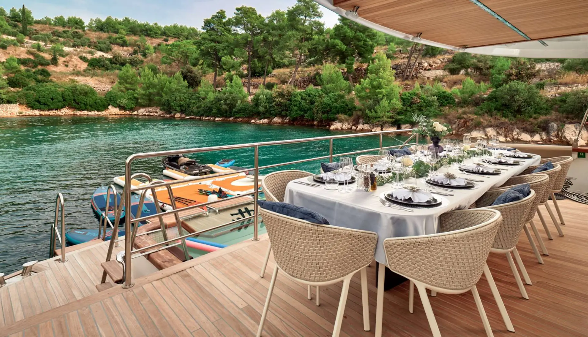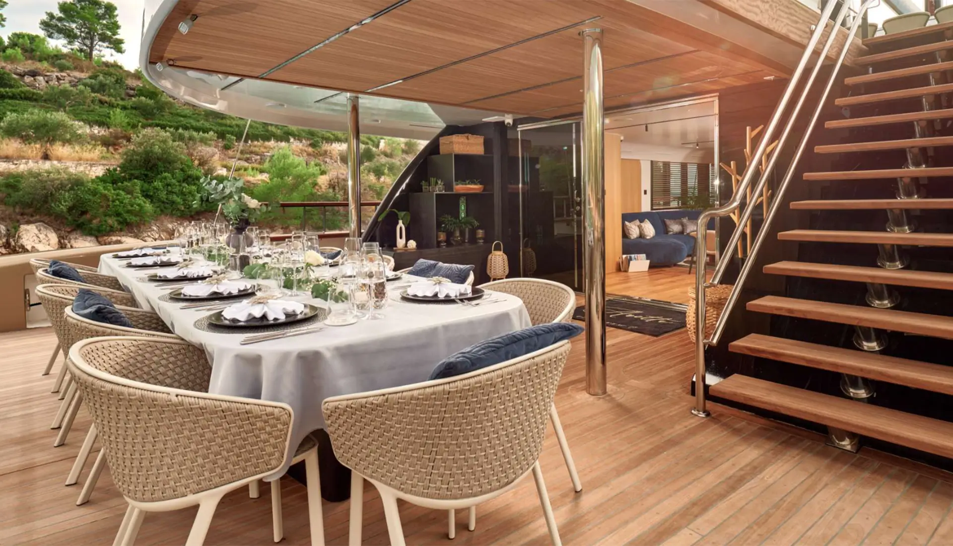 One of the yacht’s signature features is the seawater pool on the aft deck, seamlessly connected to a spacious swim platform. This beautiful open-air design creates a lively, wide view like a private seaside club[...]