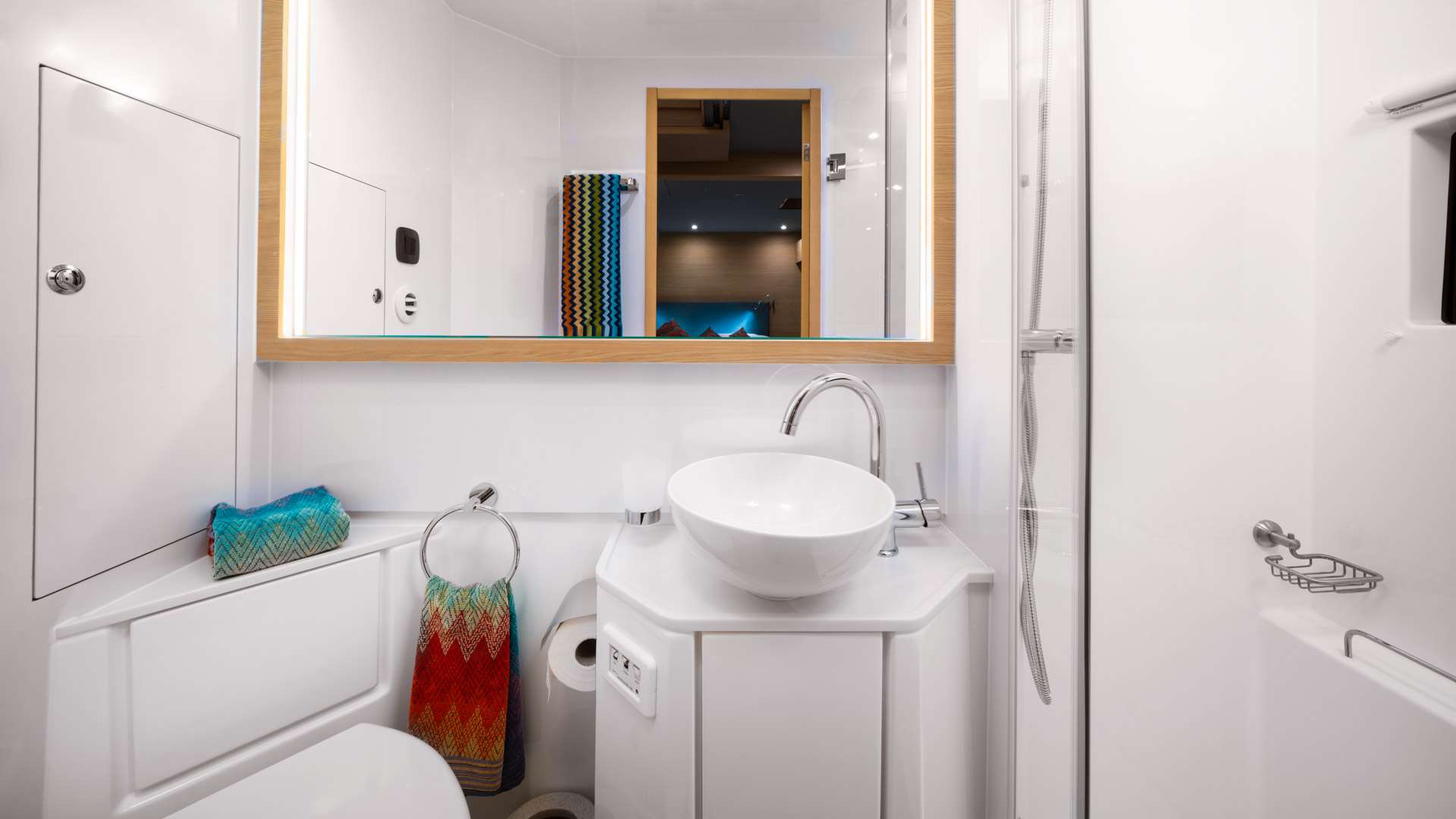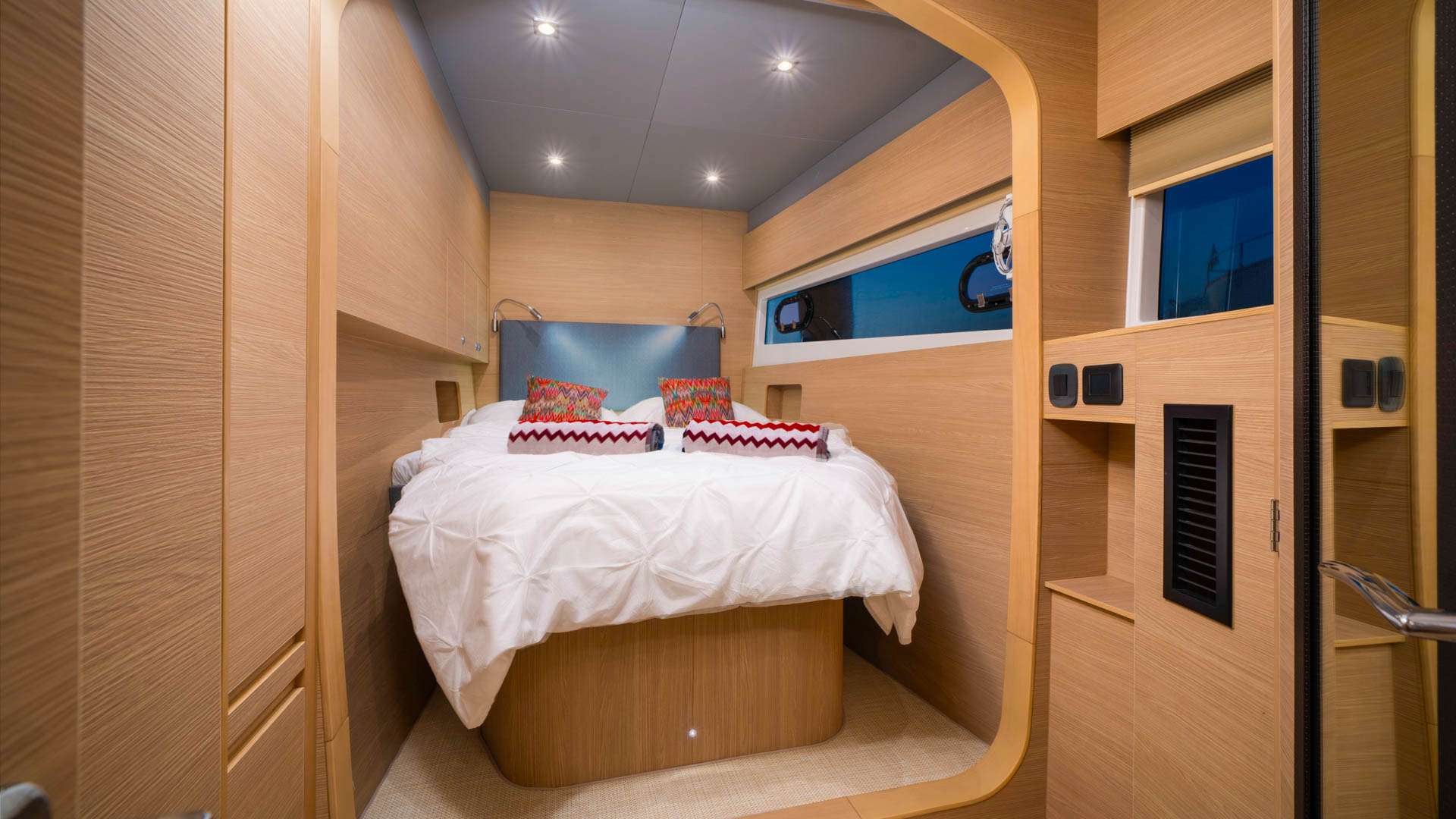 BY MY SIDE is a sleek and spacious Aquila 54 catamaran, designed for both comfort and performance. Its streamlined hull enhances cruising efficiency, ensuring a smooth and graceful ride. Featuring a master king and 3 queen cabins, all with en-suite bathrooms. The master suite has panoramic windows, with the yacht offering privacy, natural light, and modern elegance.