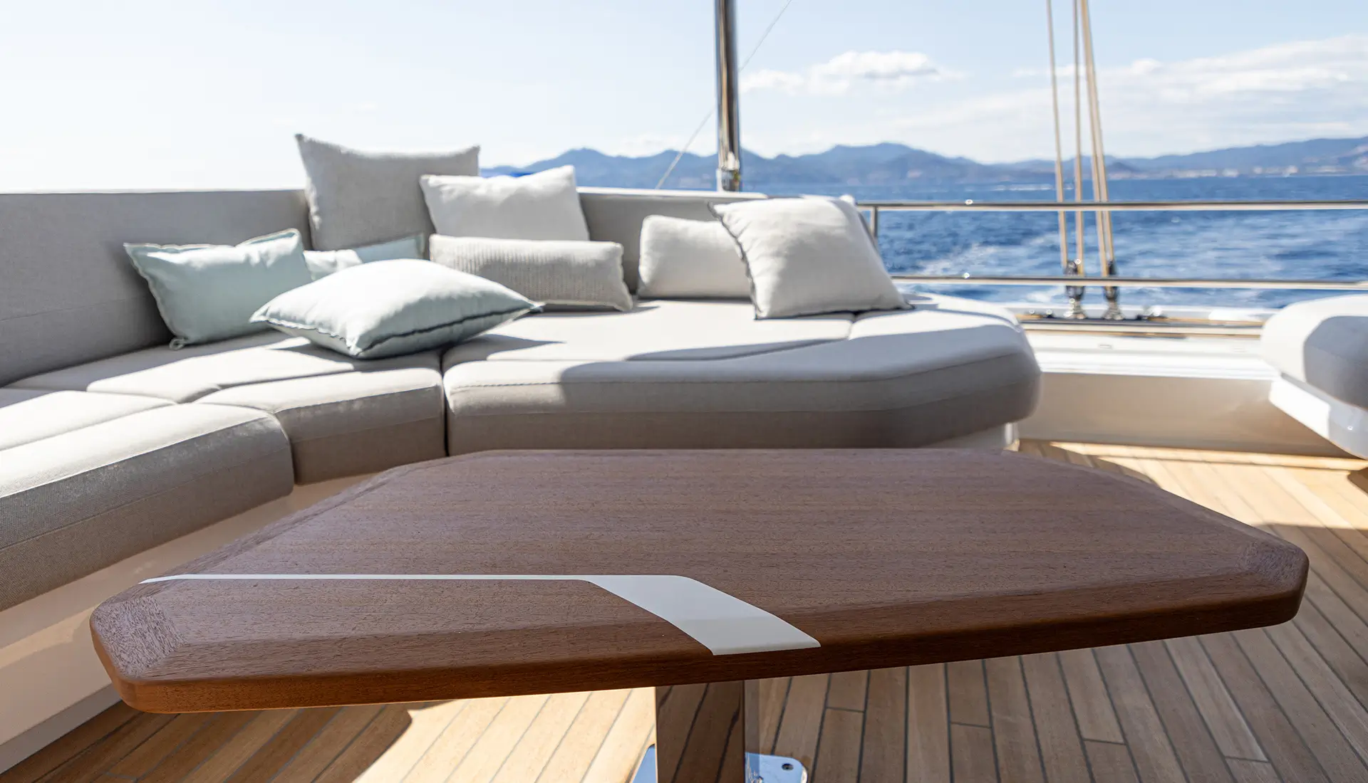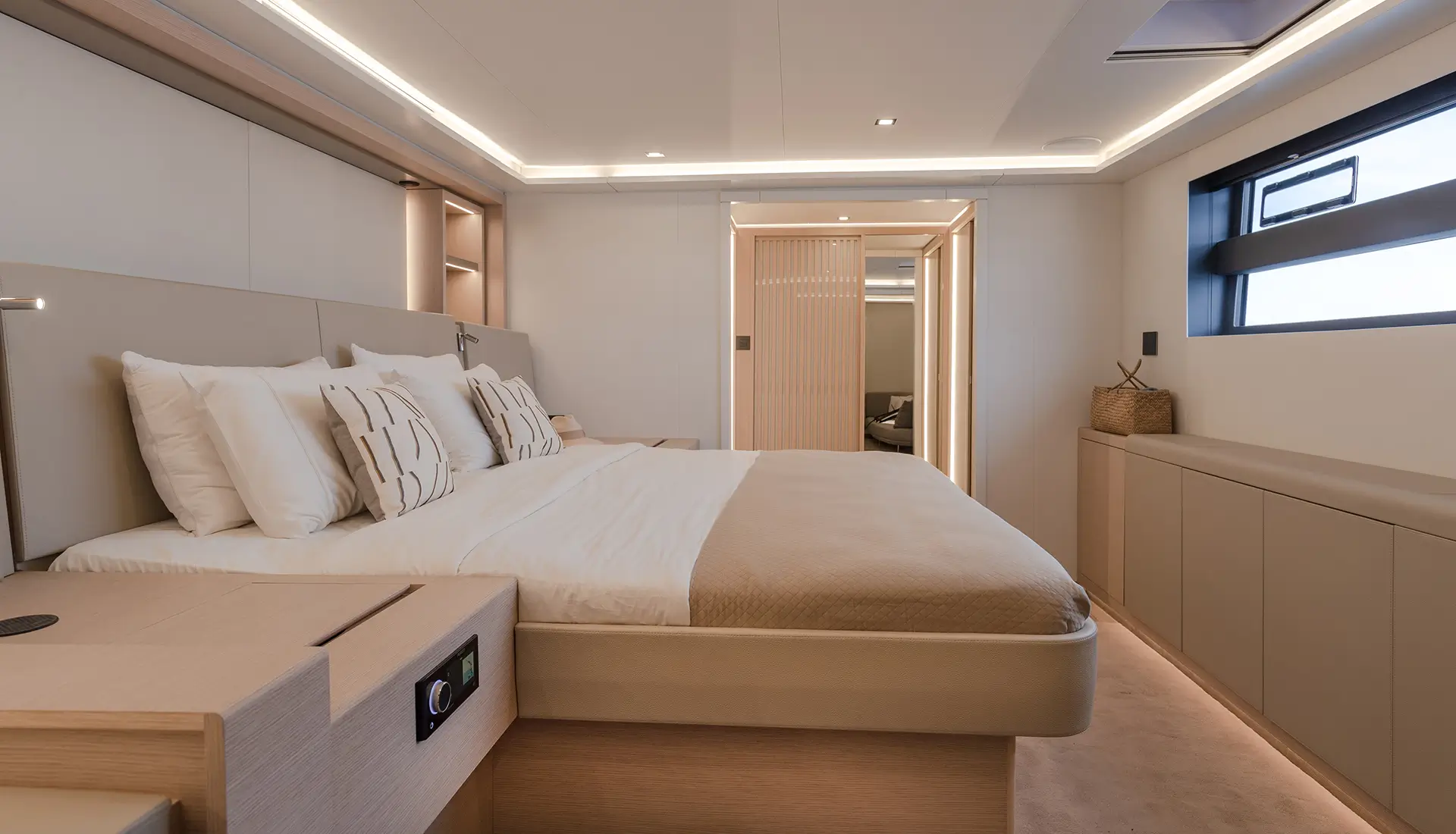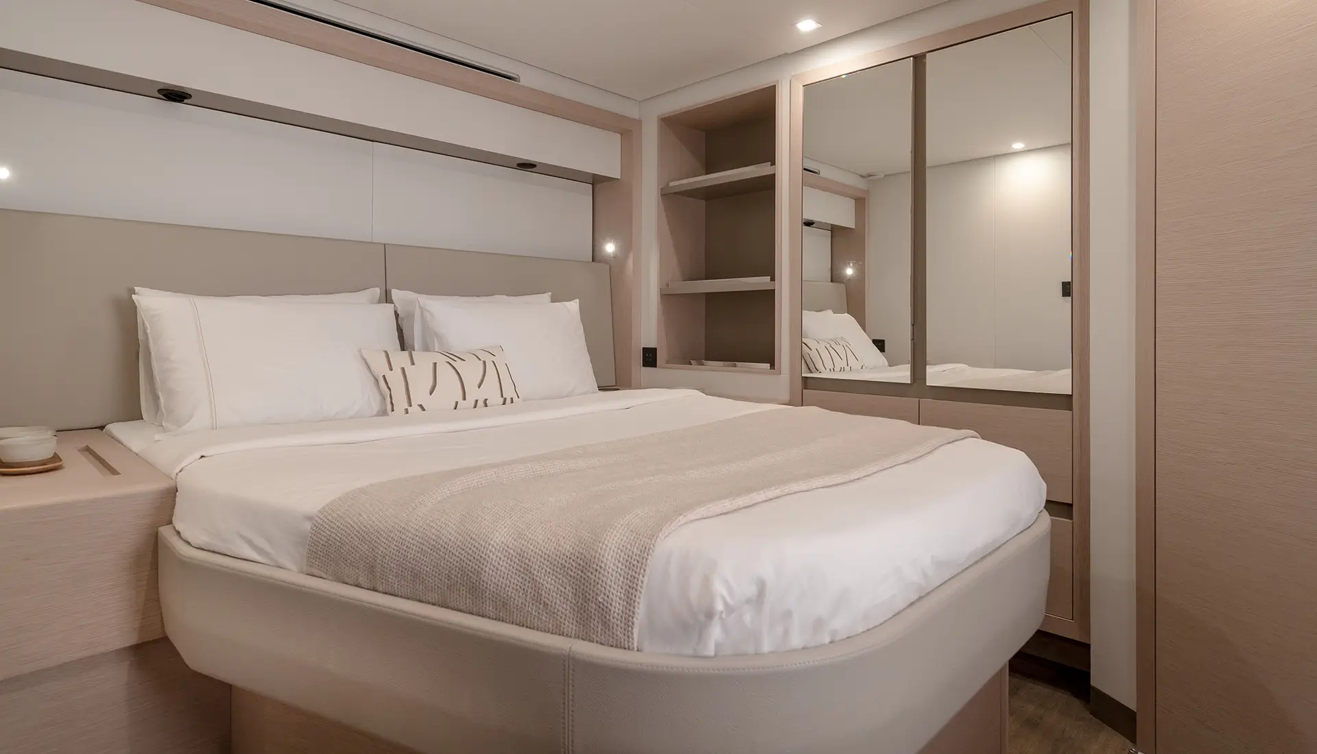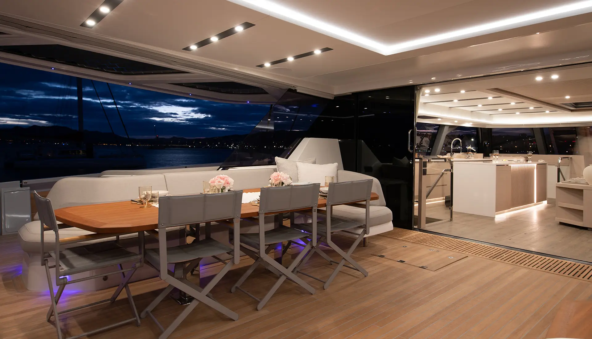 Light-filled interiors offer a modern, relaxed atmosphere onboard.