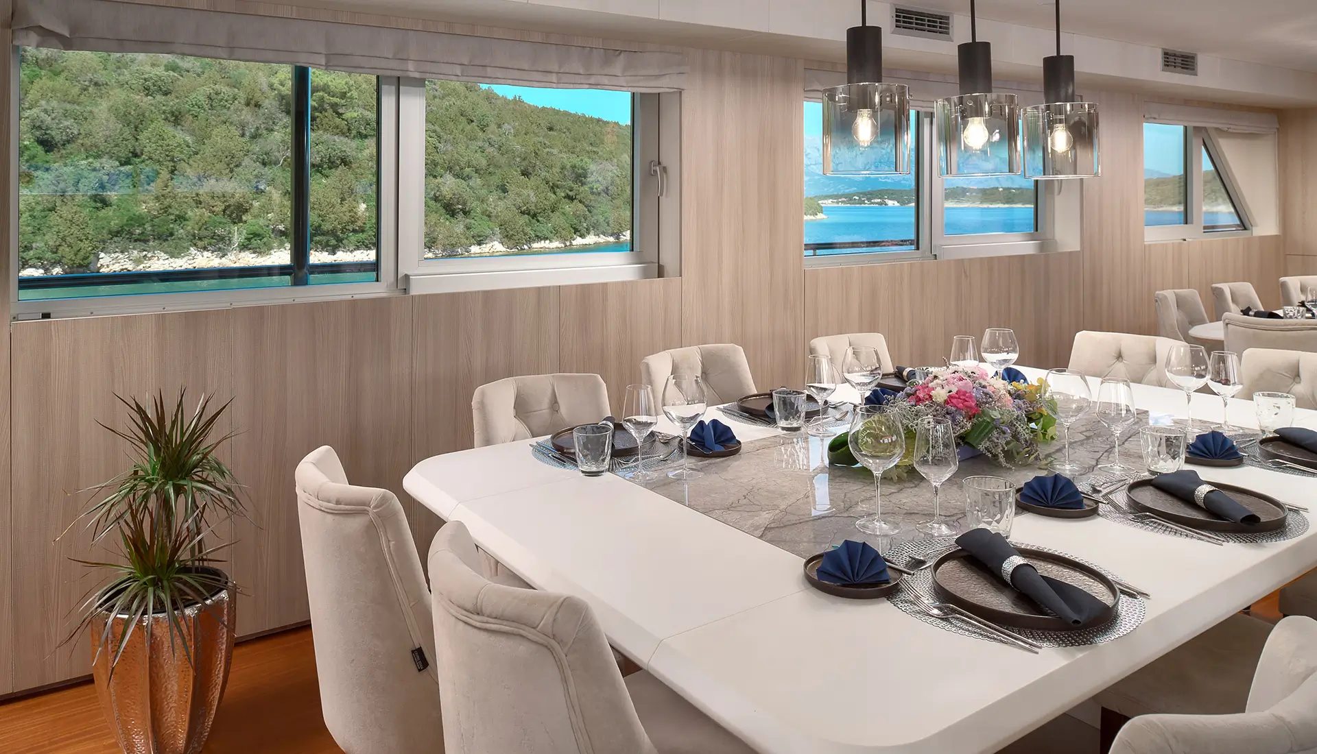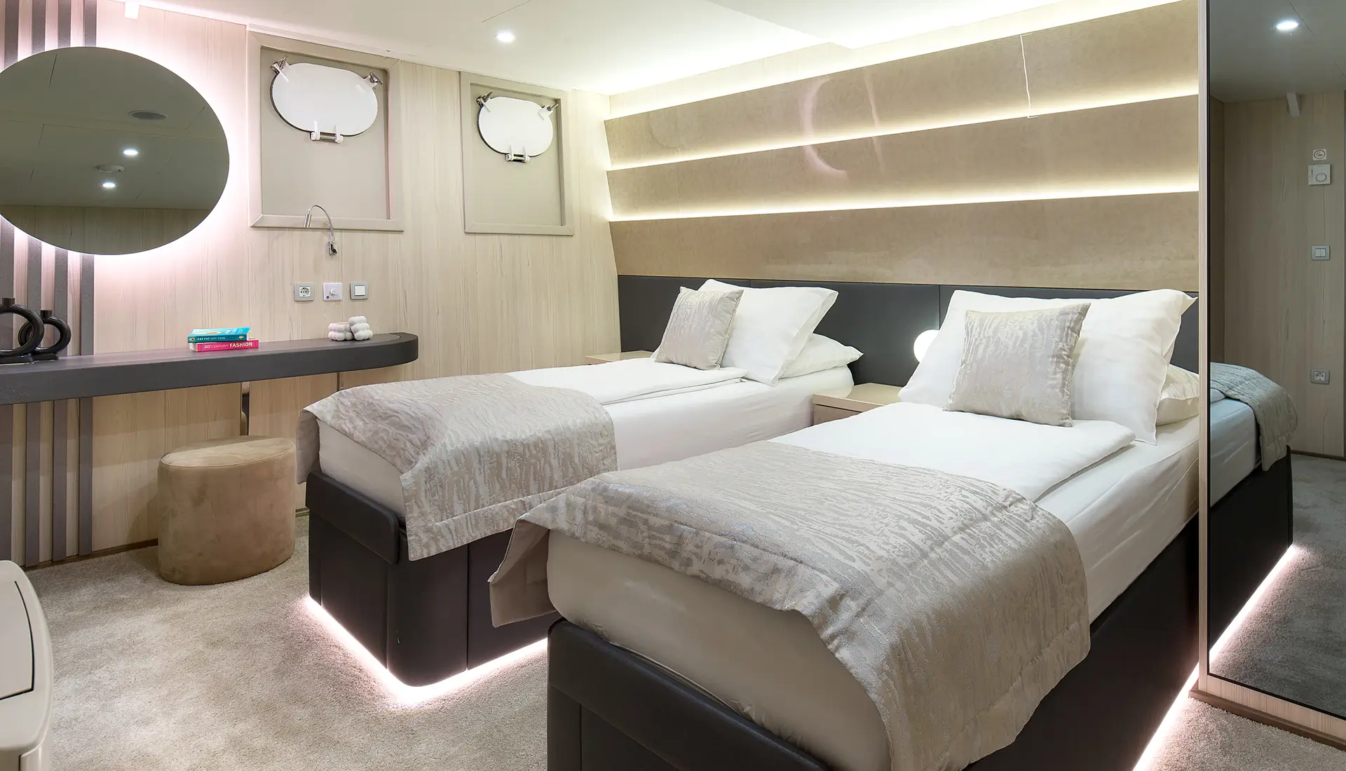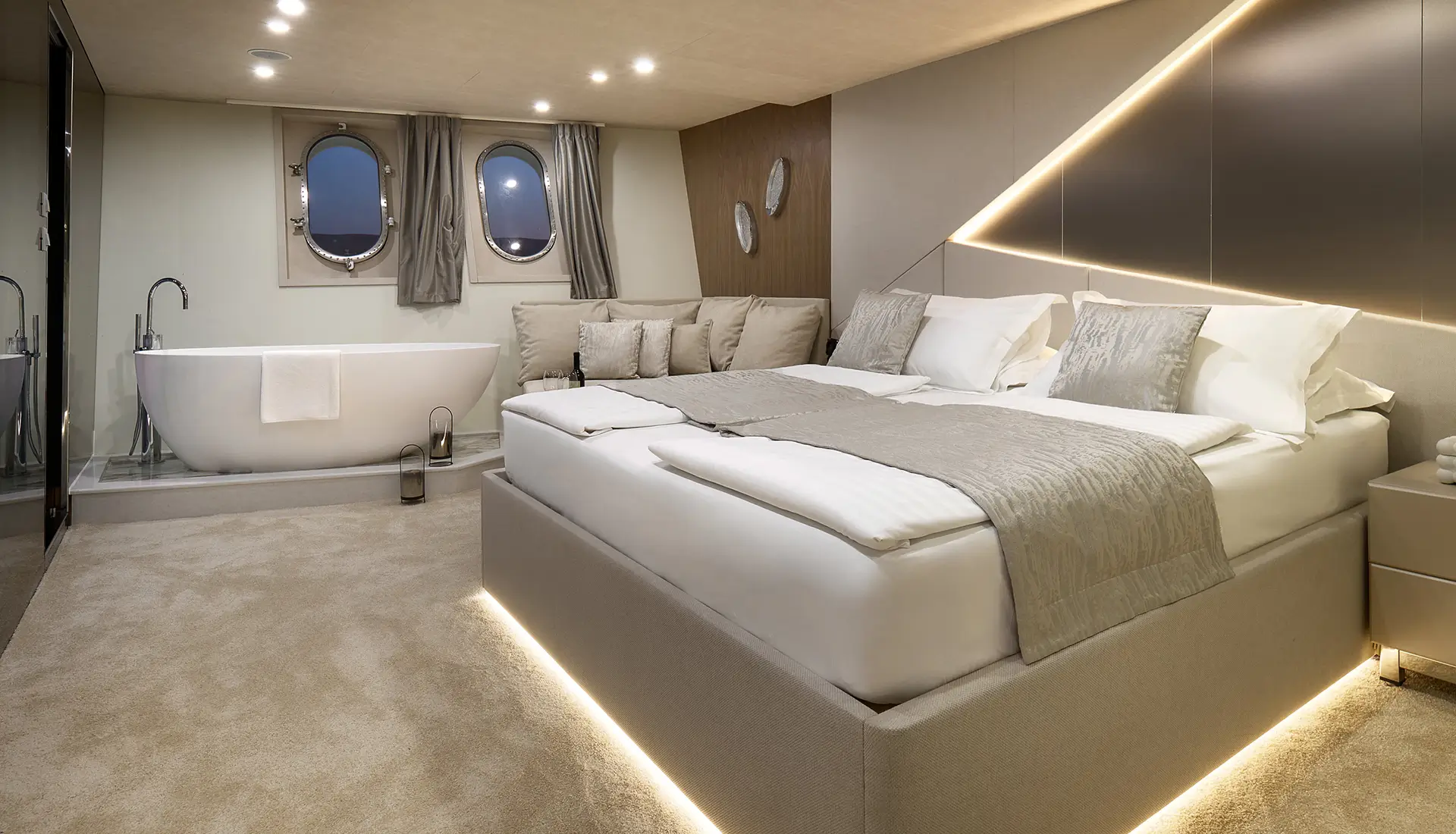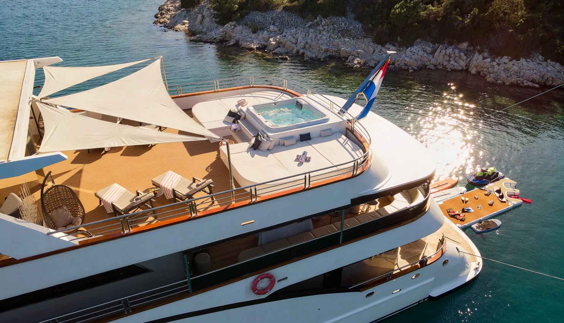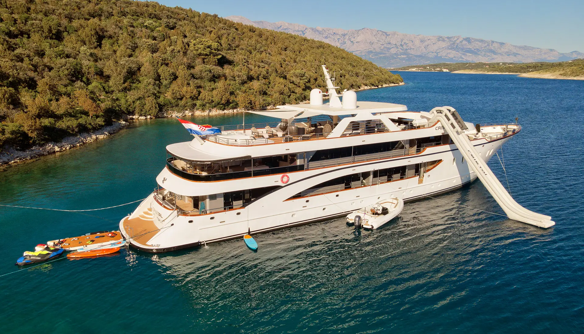 Cristal is a deluxe 161′ super-yacht, launched in 2018, featuring the latest state-of-the-art equipment and amenities. The interiors are sleek and fresh. The cabins and common areas are spacious and modern. This makes it perfect for cruising along Croatia’s beautiful coastline. Cristal has 14 Queen and Twin cabins. Each cabin has its own bathroom[...]
