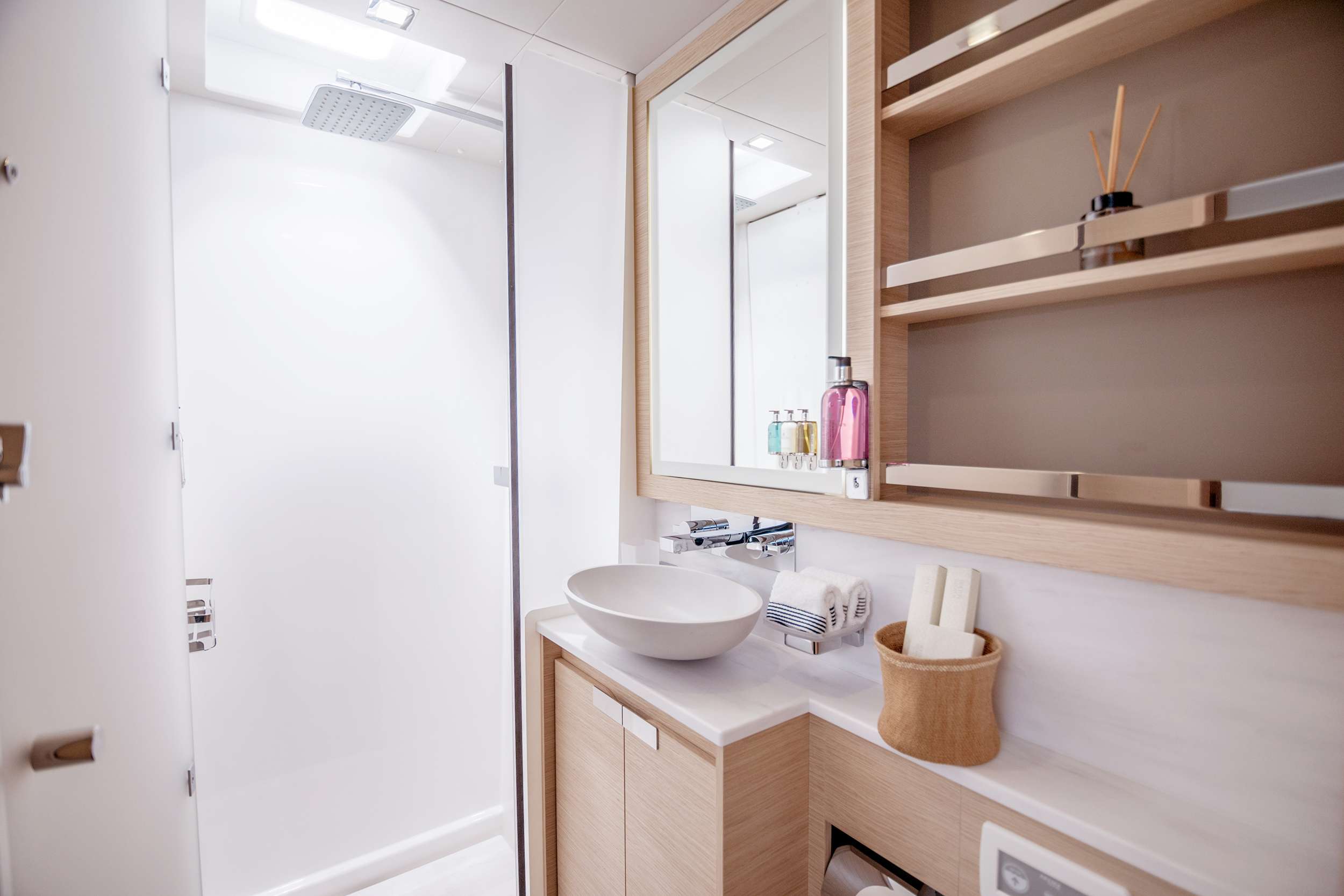 Meet the D2, the star of Fountaine Pajot’s Motor Yacht family. This yacht is all about space, luxury, elegance, and performance. With its sleek hull design and powerful Volvo Penta engines, you’ll enjoy fantastic cruising speeds. With a cruising speed of 16 knots and capable of reaching up to 19 knots, this elegant vessel offers the perfect blend of speed and stability, ensuring a smooth journey across the pristine waters of Greece, where she mainly operates. The D2 provides comfortable accommodations for eight people in 4 queen cabins.