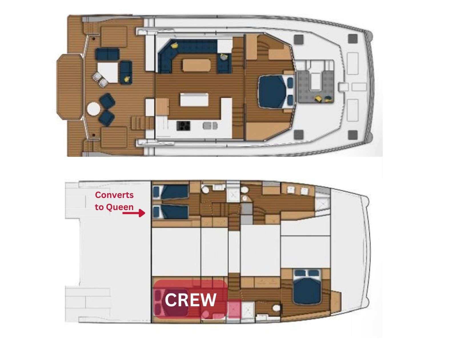 ‘Forever Young’ is an ideal choice for 3 couples or a family looking to explore the BVI in comfort and style! A favorite feature of ‘Forever Young’s’ layout is the on-deck primary cabin with a walk-around King-sized bed. The master has 180° visibility out of high windows, for a panoramic view of the BVI[...]