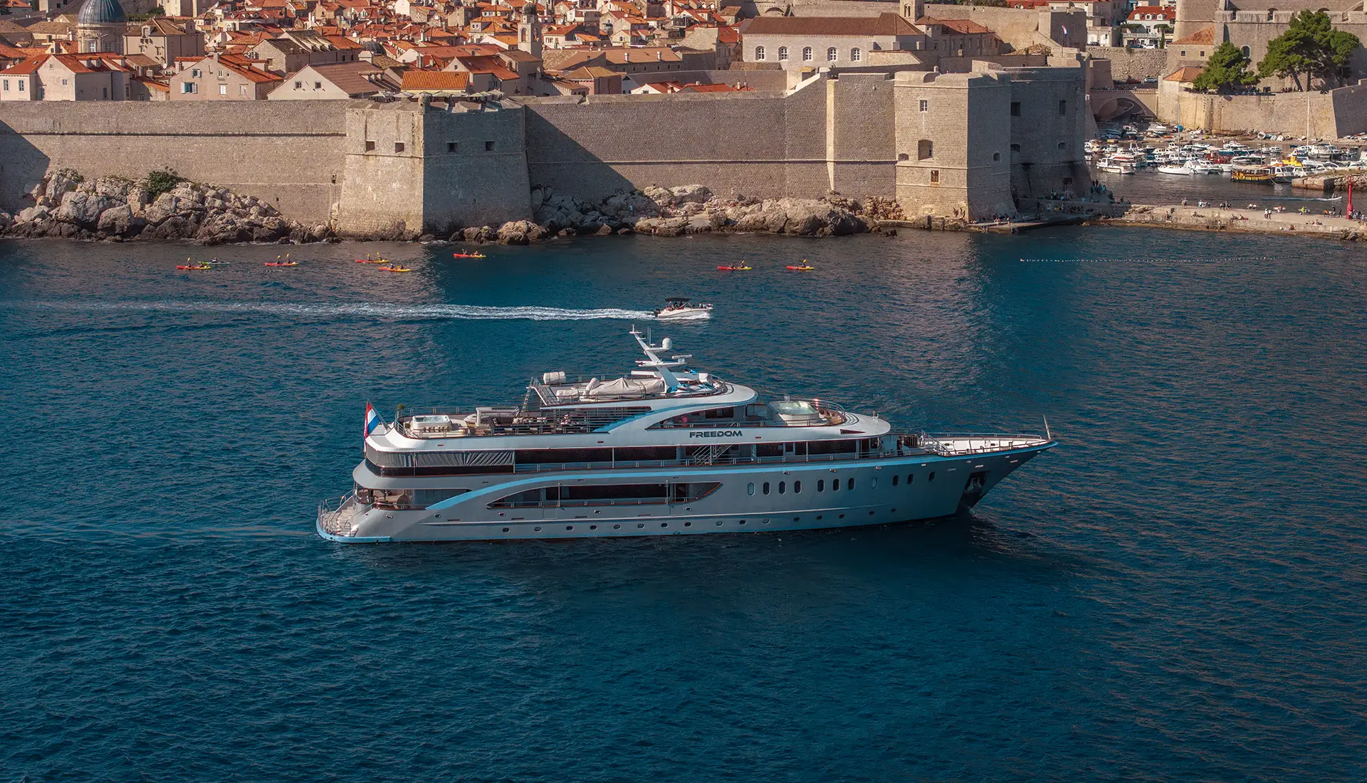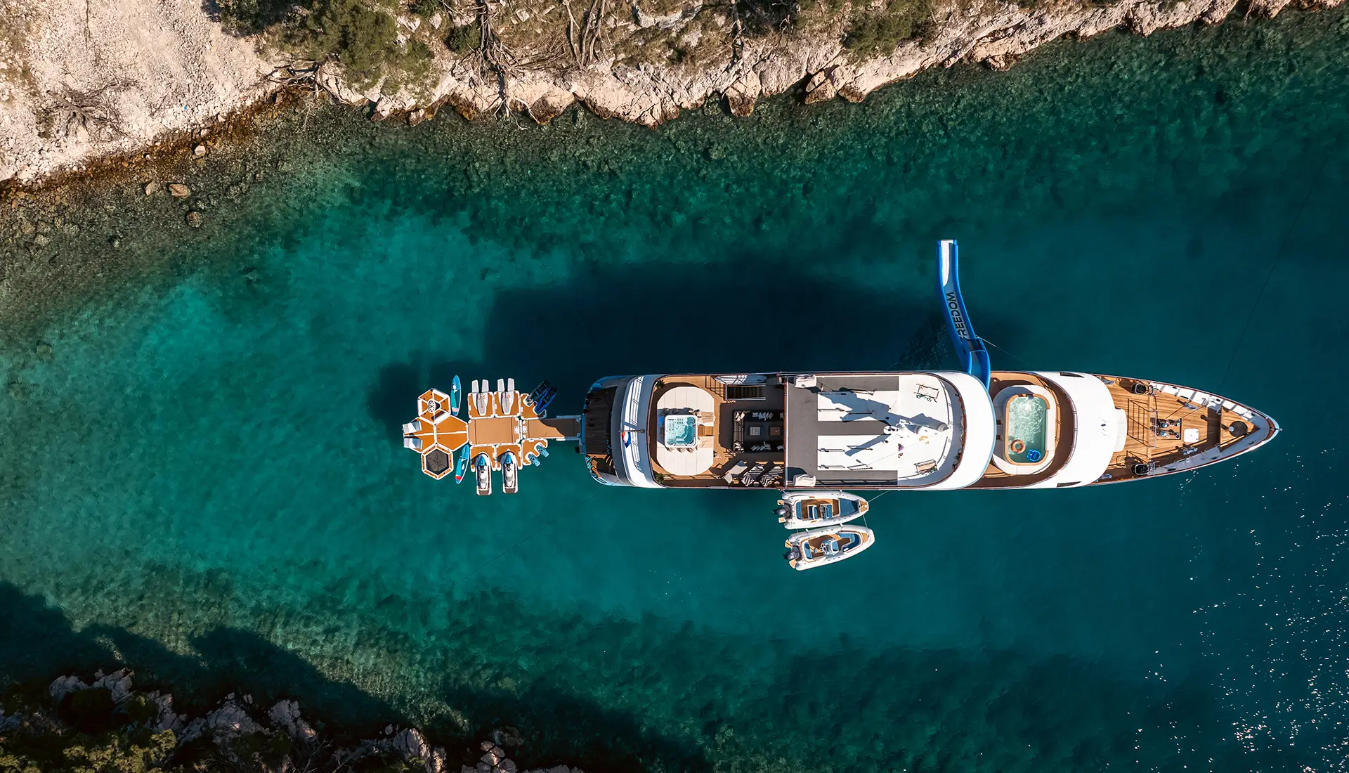 Freedom is a custom superyacht available for luxury charters in Croatia. It offers top luxury and entertainment for up to 22 guests. This 159-foot superyacht from 2019 has 11 staterooms. It includes two master suites and a VIP cabin. There are also convertible double cabins that are perfect for families and groups. Each cabin is air-conditioned with Wi-Fi access, providing ultimate comfort for every guest[...]