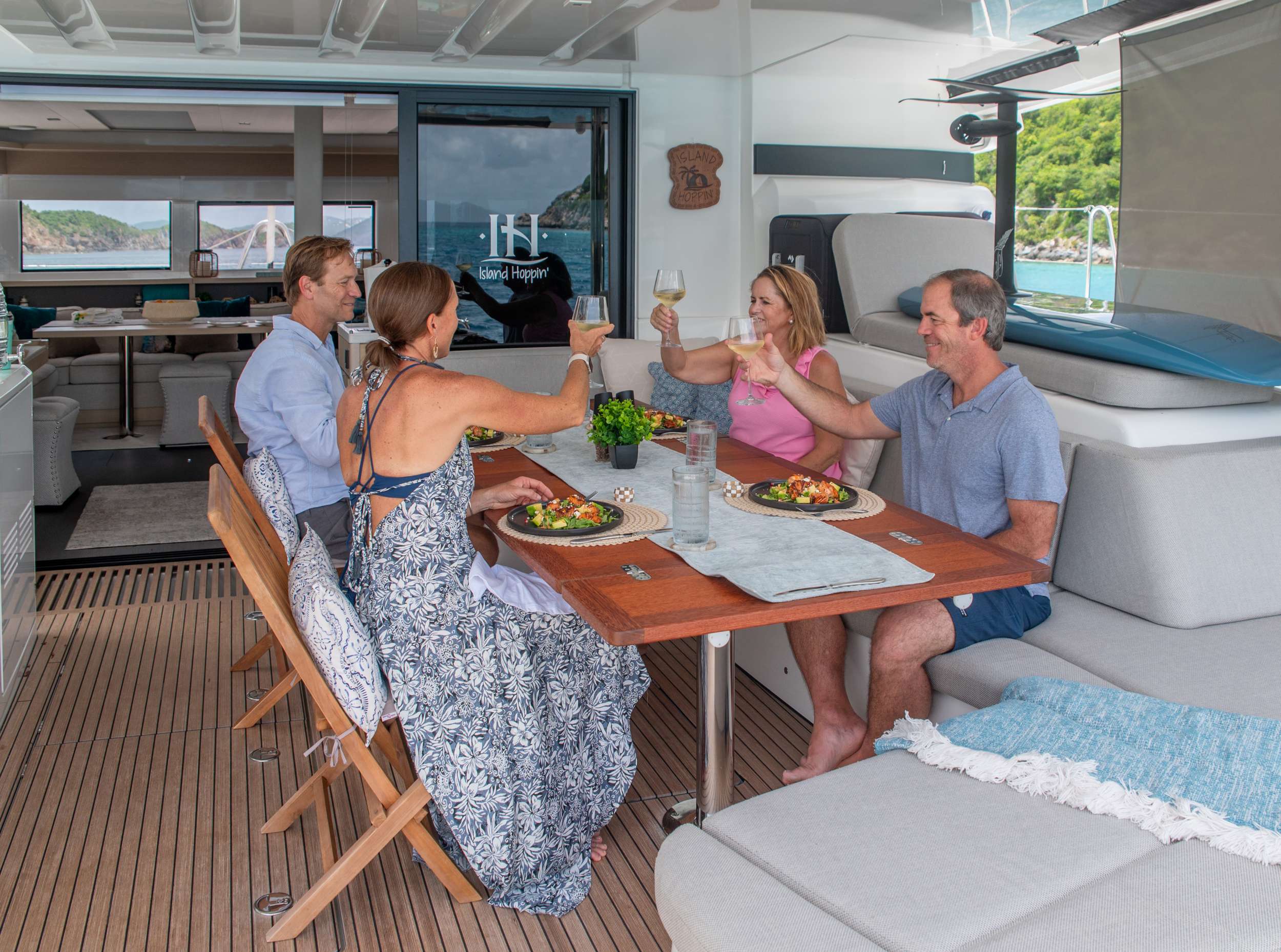 ISLAND HOPPIN’ is a beautiful 2024 Lagoon 55 providing luxury accommodations for up to 8 guests in 4 spacious ensuite queen cabins.