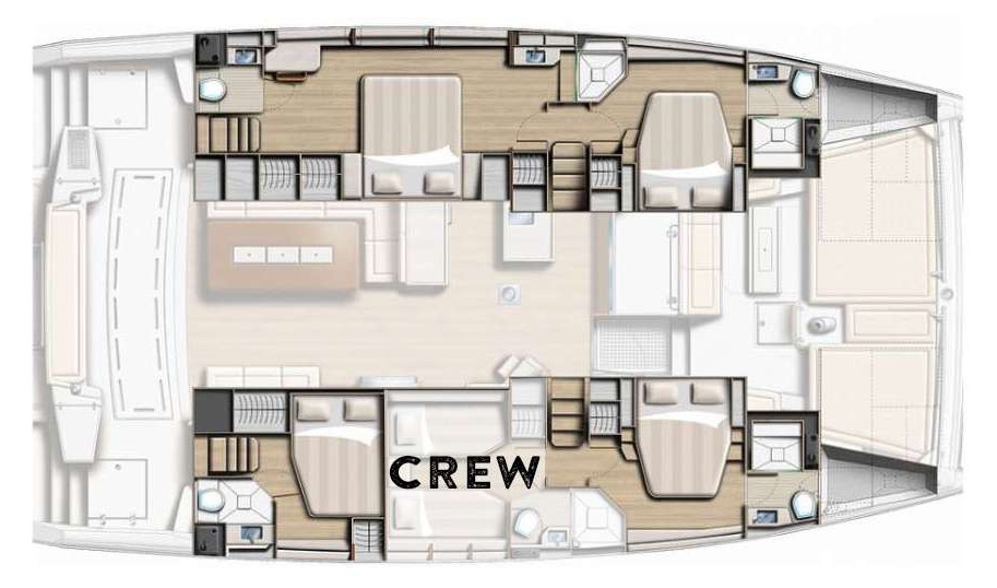 Aboard LOCATION 5.4, there are 4 queen staterooms for guests that all include ensuite bathrooms with walk-in showers. All cabins have individually controlled air-conditioning for the comfort of each cabin. Beautiful natural lighting and great use of space make these suites extremely comfortable and elegant. This cruising catamaran is great for small groups or large families. **The crew is flexible to move if twins are needed[...]