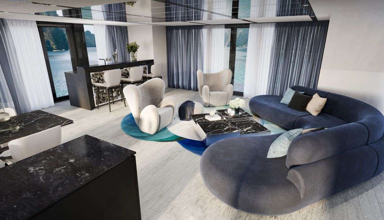 Maria Therese boasts expansive living areas that epitomize the concept of a floating paradise. The lavish salon and dining area seamlessly open up to create an inviting beach club atmosphere, adorned with exquisite finishes and contemporary furnishings. The spacious deck provides ample room for sunbathing, while the flybridge bar is perfect for sipping cocktails as you enjoy breathtaking panoramic views of the Caribbean’s azure waters and lush landscapes[...]