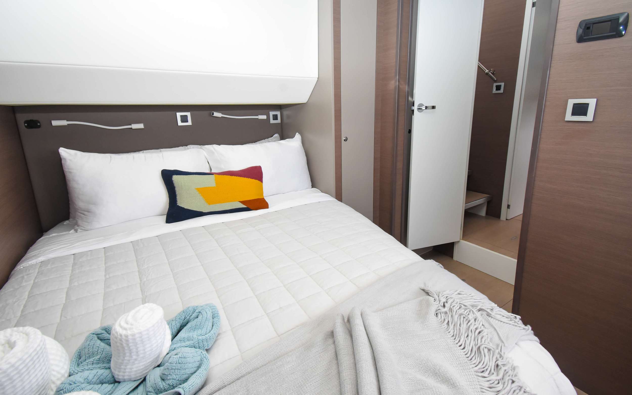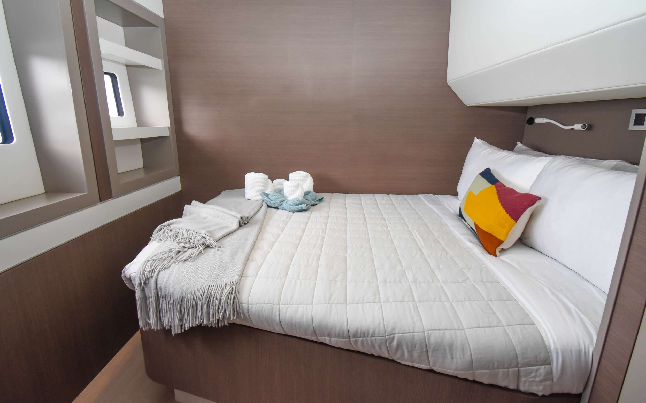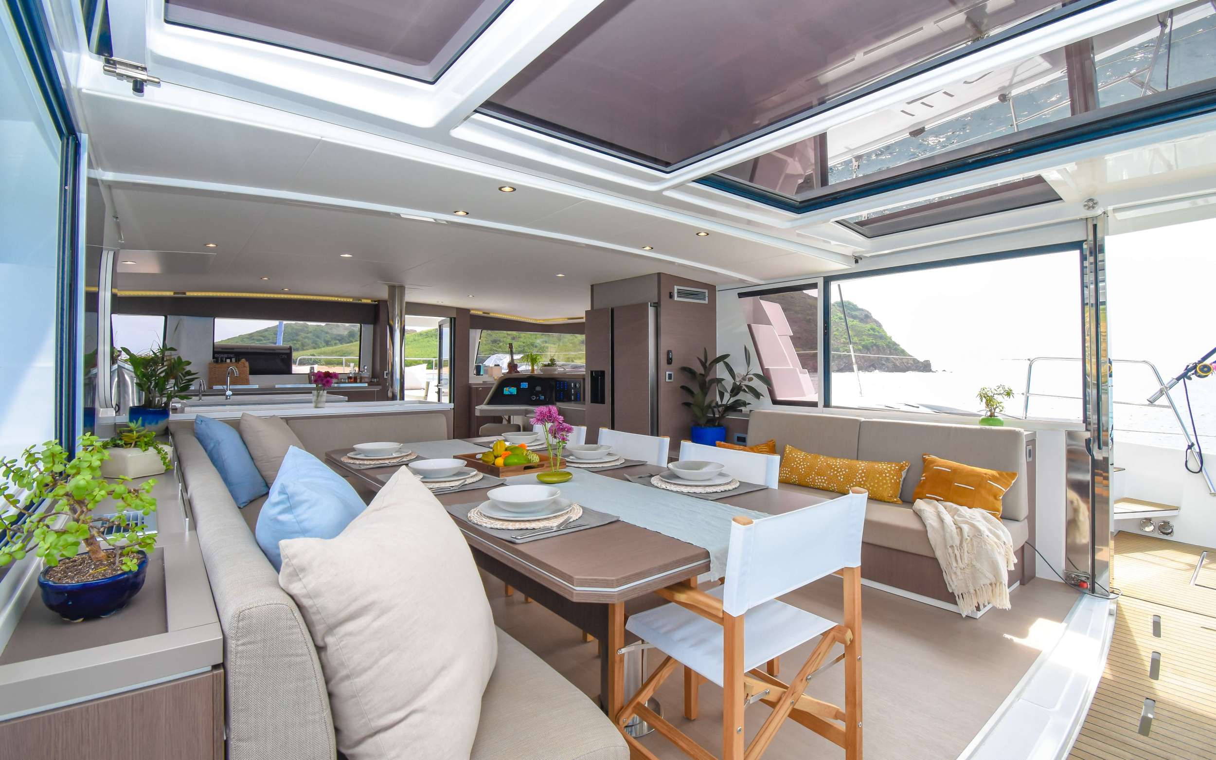 NAE KAE, is a superb example of a Bali catamaran. As you step on board into a beautifully appointed cockpit, complete with teak floors and a dining table for ten and a comfortable lounging bench, you immediately realize what a unique charter experience you are about to have. As you make your way up to the flybridge, you’ll be blown away by the amazing turquoise water with 360° views and enjoy the up-close view of the sails. It’s also a great place to read your favorite book or a favorite spot for appetizers and cocktails at sundown. The main salon is comfortable and luxurious, with open spaces and natural light fed by all the windows surrounding you. All guest cabins are spacious with large windows and offer plenty of natural light[...]