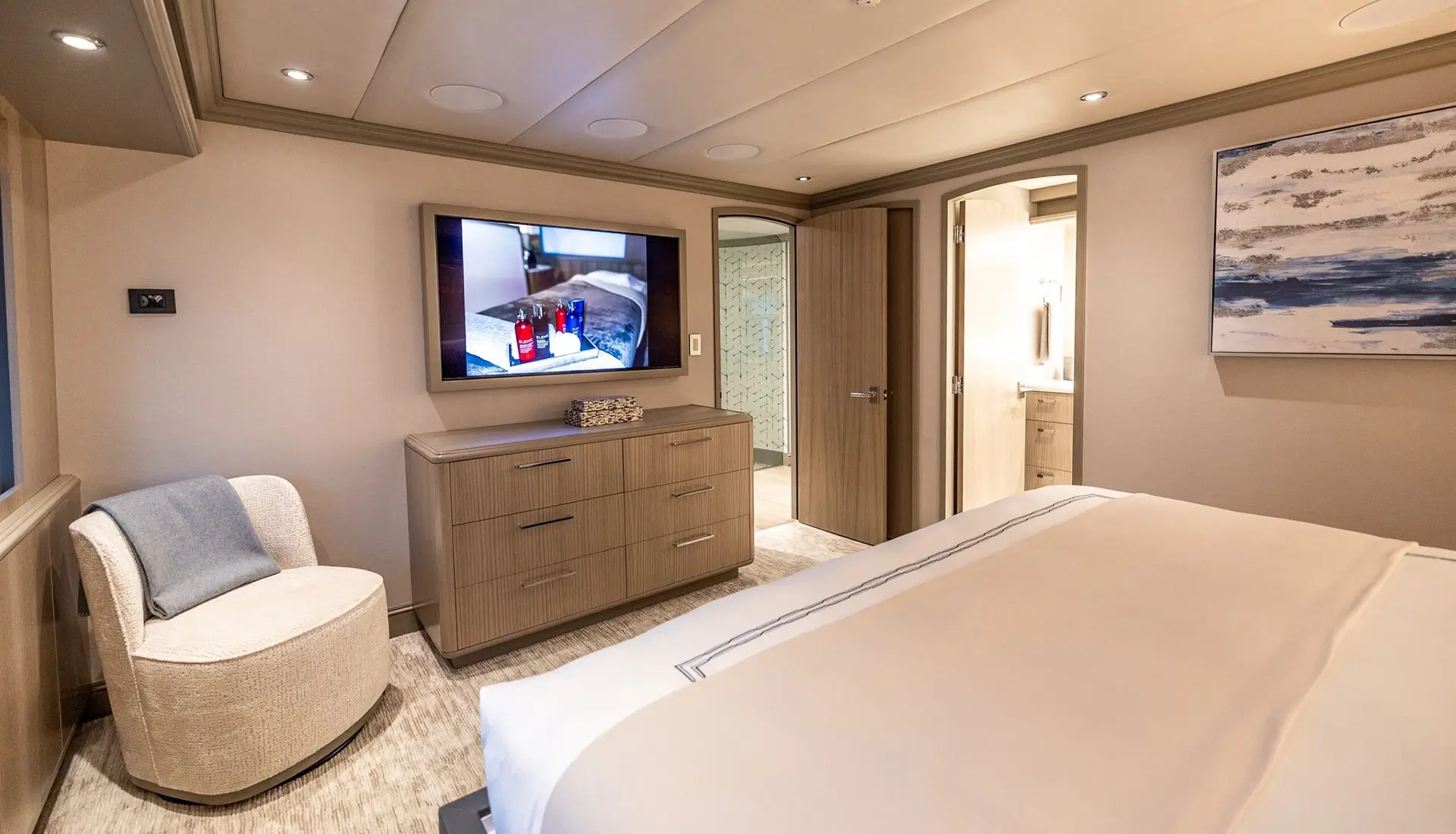 Features 6 luxurious king staterooms! For groups that need flexibility, two staterooms will convert to twins – perfect for all couples or families.