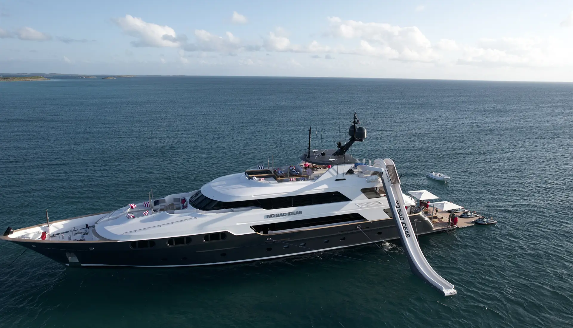 NO BAD IDEAS is a 160 ft Motor Yacht with luxury accommodations for 12 guests.