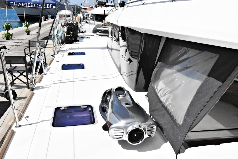 The aft deck offers a beautiful dining area for you to enjoy meals while looking out to sea, as well as a large sofa to relax. The flybridge offers additional seating to unwind while enjoying panoramic views. The foredeck has sun pads and a sunken seating area, which is an ideal place to be while sailing or at anchor with a cocktail[...]