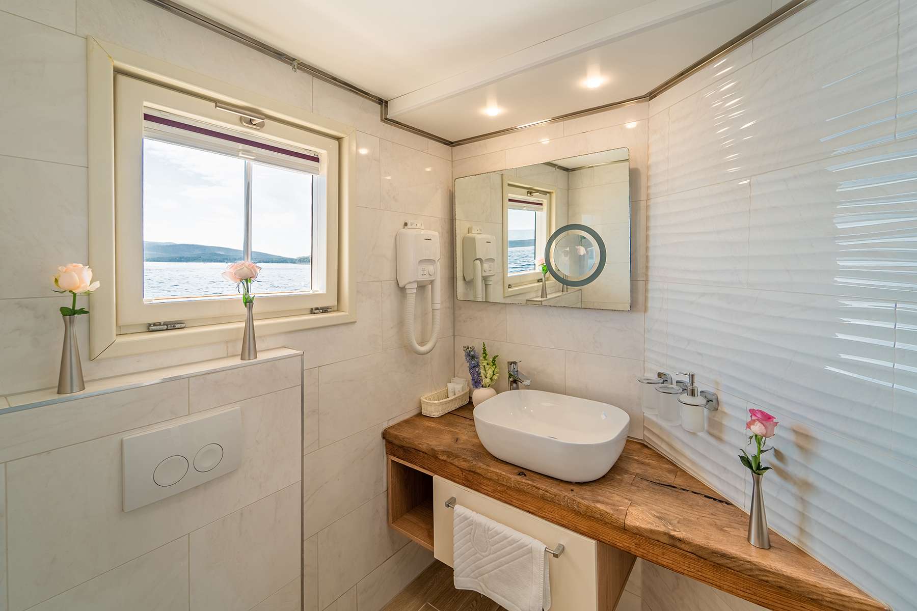 All decks are covered with Burmese teak, giving the yacht a touch of luxury. Across the sundeck, there are teak deckchairs, a jacuzzi, and a gym. All decks and staircases feature led lighting and are equipped with Bose speakers[...]