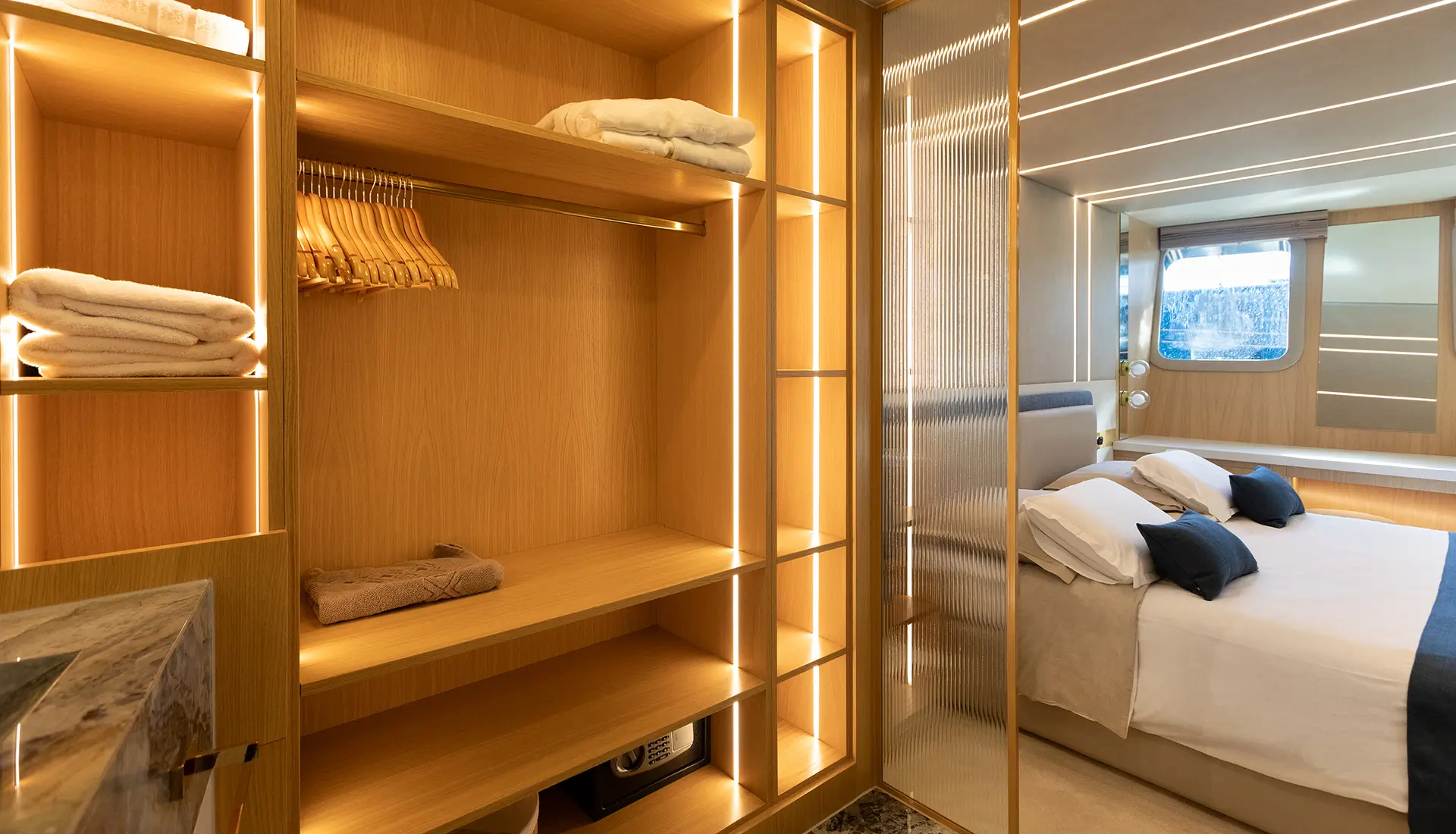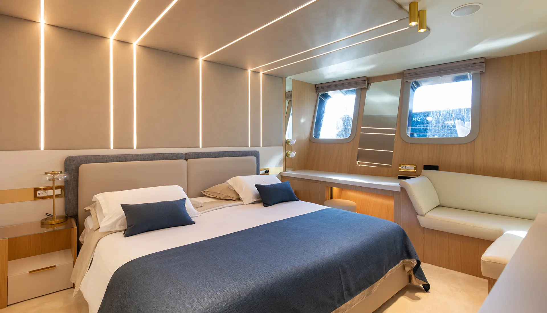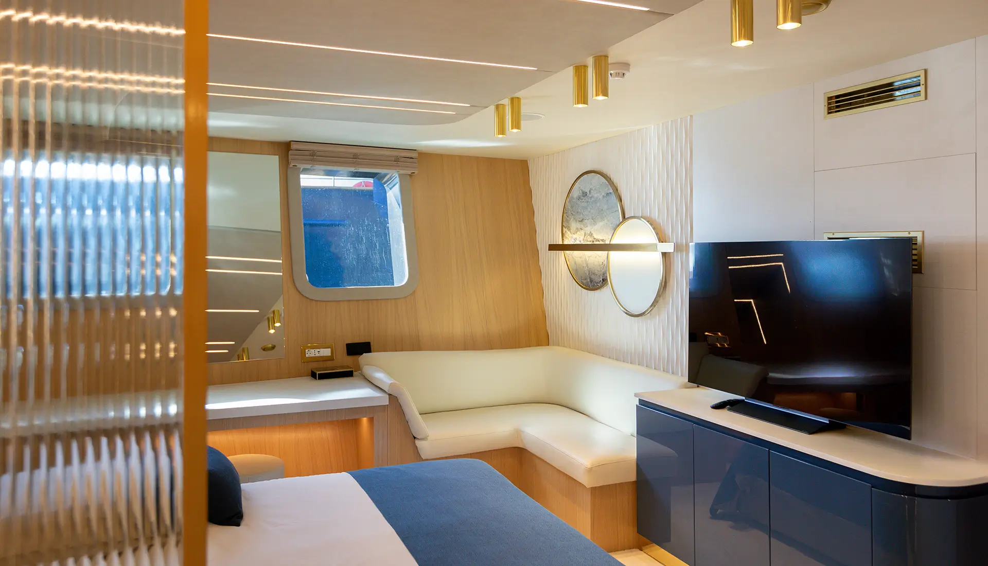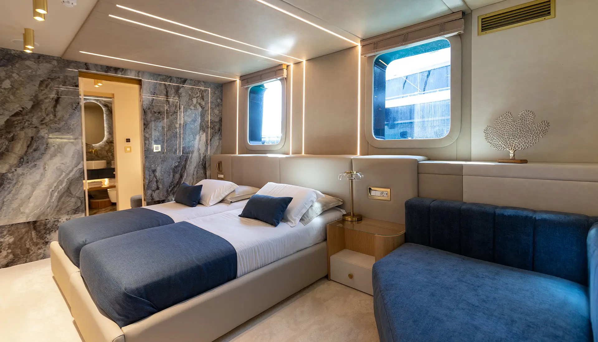 Step into a world of refined sophistication with six extraordinary cabins, including a full-beam Master and VIP suite that rival luxury hotel penthouses. Each features lavish marble bathrooms, while four additional cabins offer versatile king-or-twin configurations to suit any group’s needs.