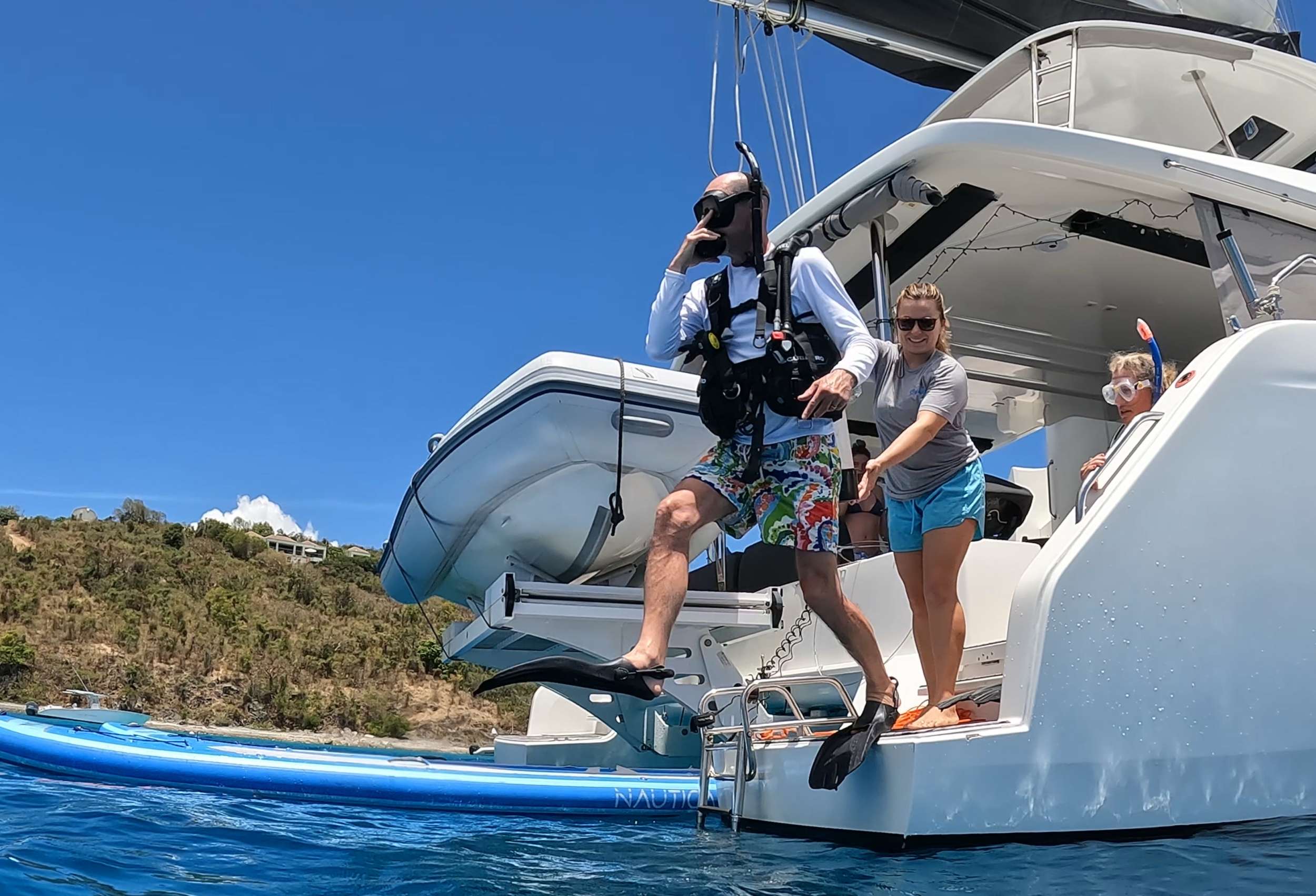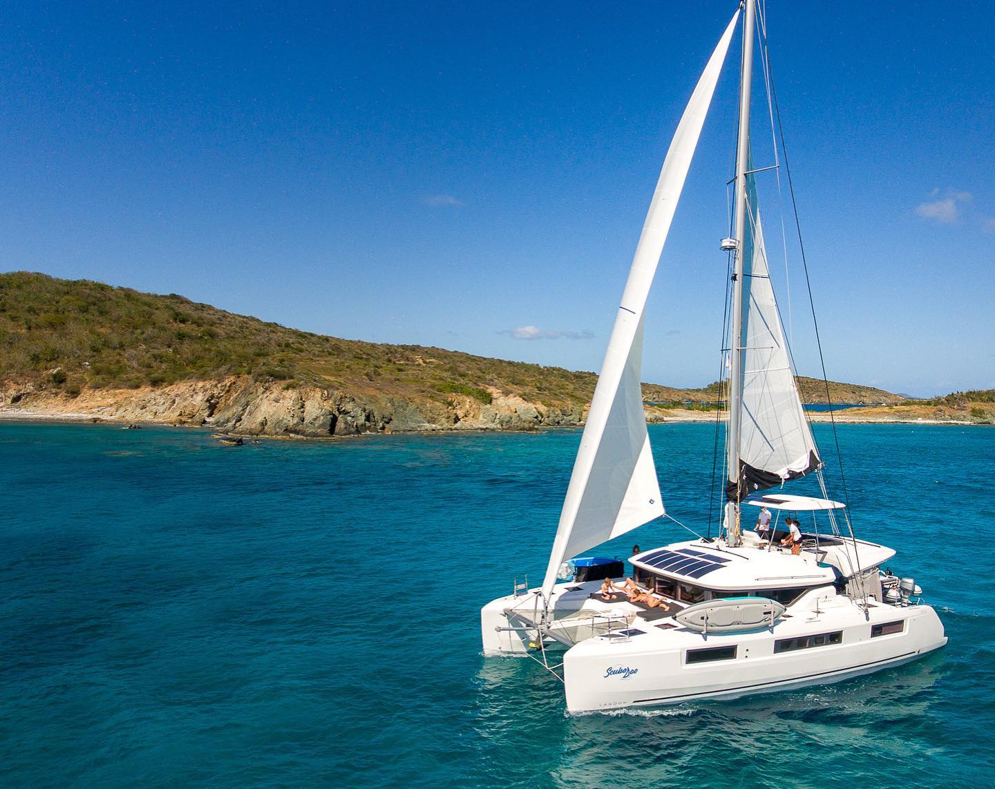 SCUBA DOO is a Lagoon 50 offering 3 queen guest cabins and one double cabin.