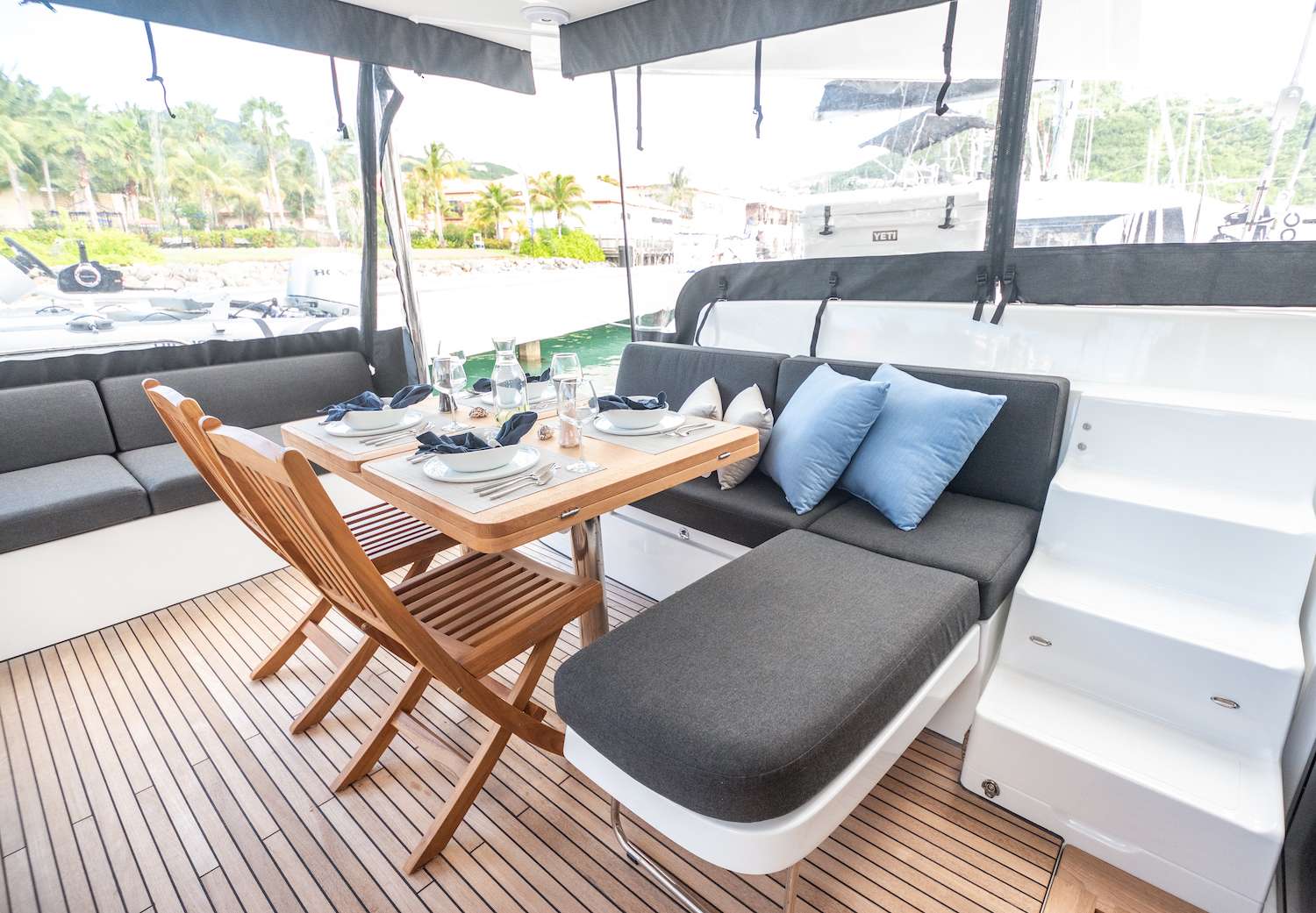 Alfresco dining in the cockpit will comfortably accommodate 8 guests at the table. The salon will also seat up to 8 guests for dining or just relaxing in the air conditioning. There are plenty of options for sunbathing and lots of places to kick back in the shade[...]