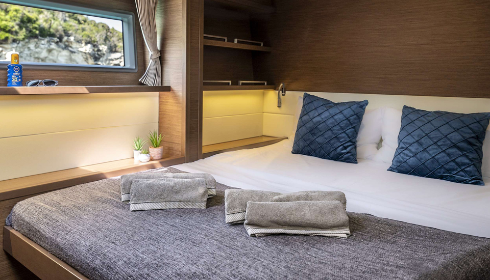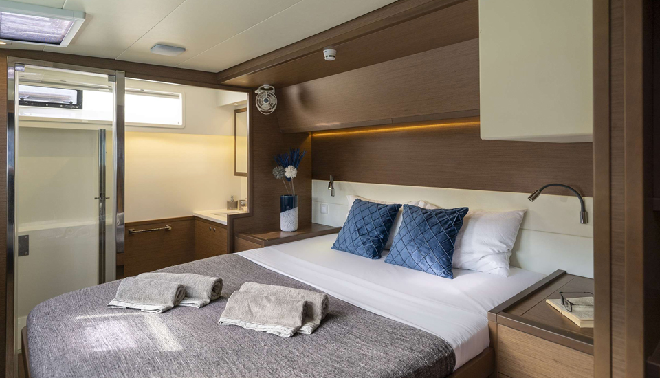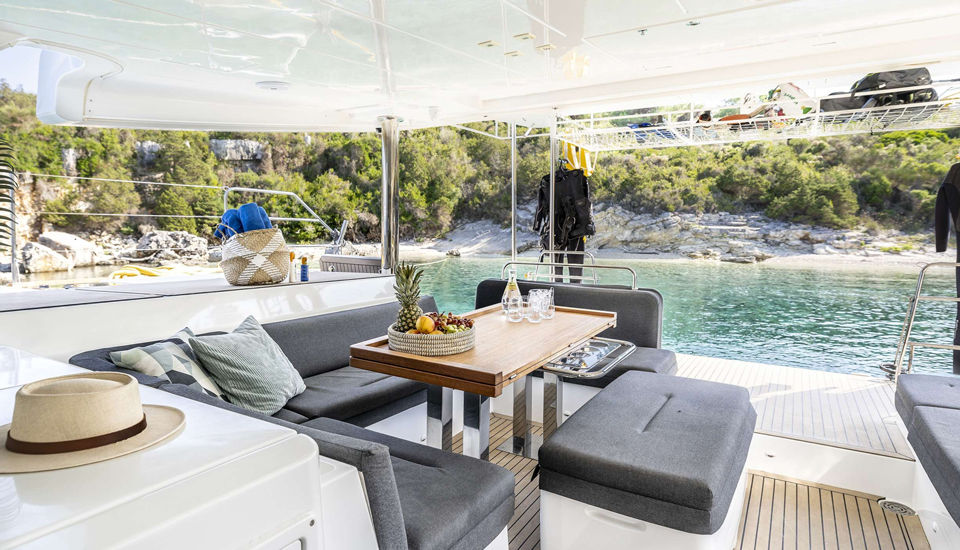 Explore the Ionian Sea aboard TAMIRO, a luxury Lagoon 52 catamaran, perfect for fully crewed charters. Setting sail from Lefkas or Corfu, Tamiro is ready with four cabins, making it ideal for trips with four couples or two families—accommodations for 8 guests in 4 queen cabins, all with en-suite facilities.