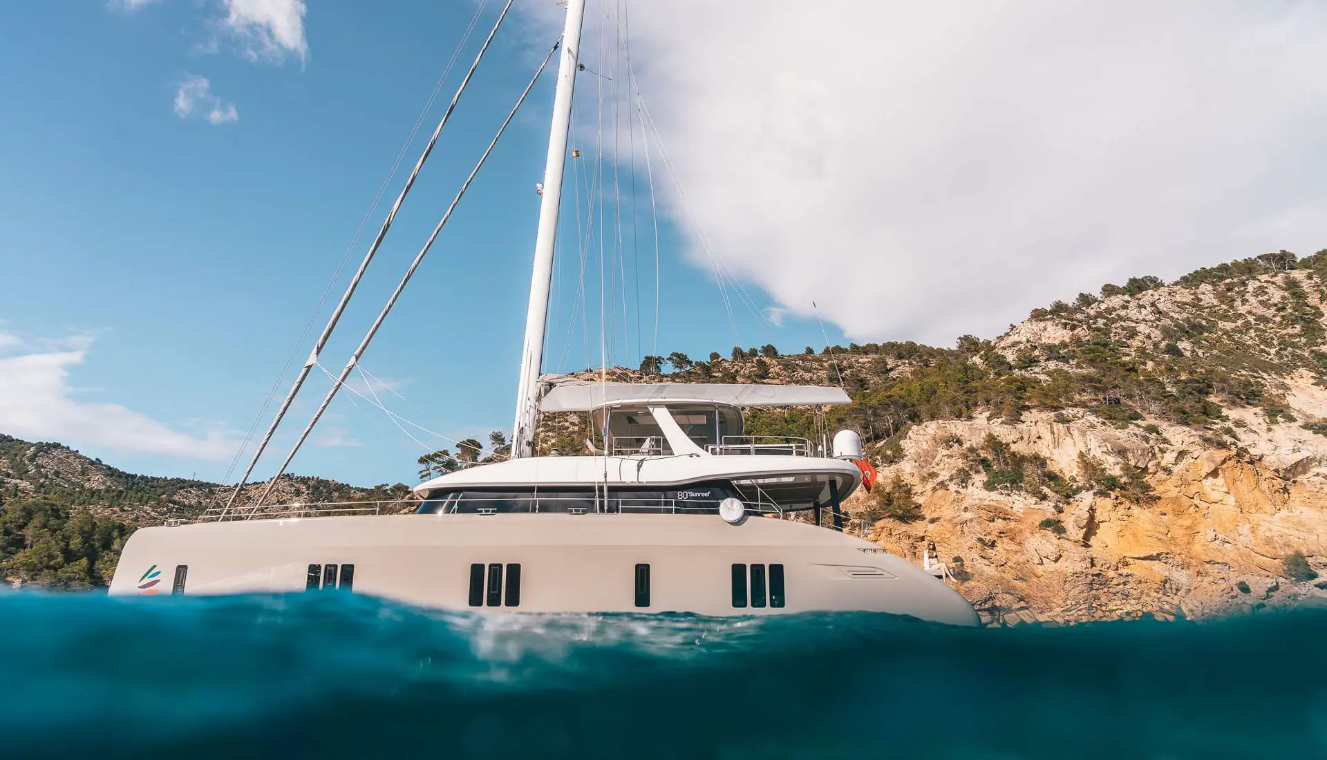 Viva La Vida is a 80 ft Sailing ECO Sunreef power catamaran with luxury accommodations for 9 guests.